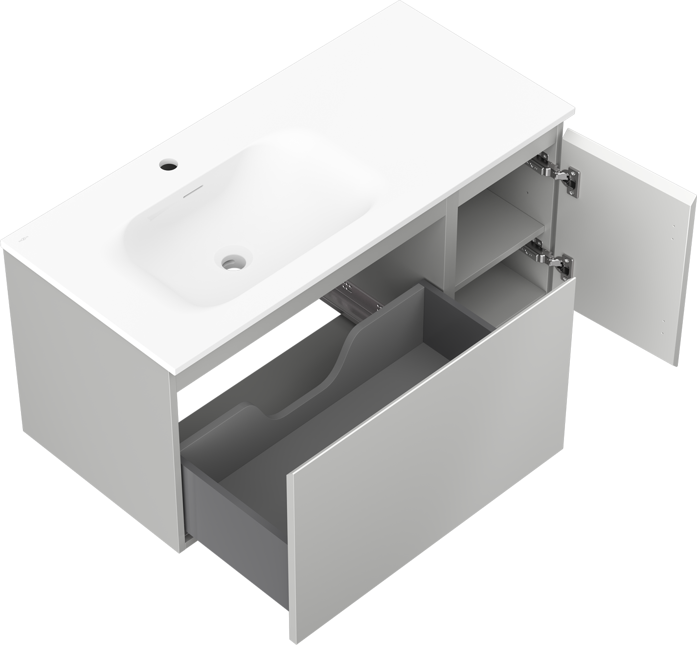 Mexen Orio ντουλάπι μπάνιου 100 cm με νιπτήρα Vela αριστερά, 1S, 1D, γκρι ματ/λευκό