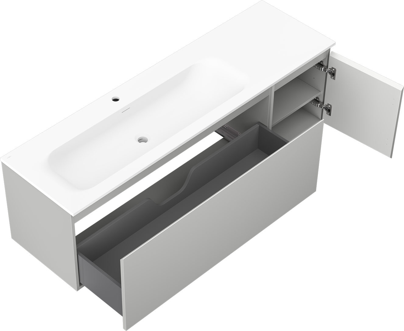 Η εγκοπή στο συρτάρι είναι σχεδιασμένη με τέτοιο τρόπο, ώστε να φιλοξενεί το σιφόνι, το οποίο είναι απαραίτητο στις εγκαταστάσεις νιπτήρων. Έτσι, το έπιπλο μπορεί να εγκατασταθεί πλήρως λειτουργικά, χωρίς την ανάγκη παραίτησης από χώρο στο συρτάρι υπέρ της εγκατάστασης.