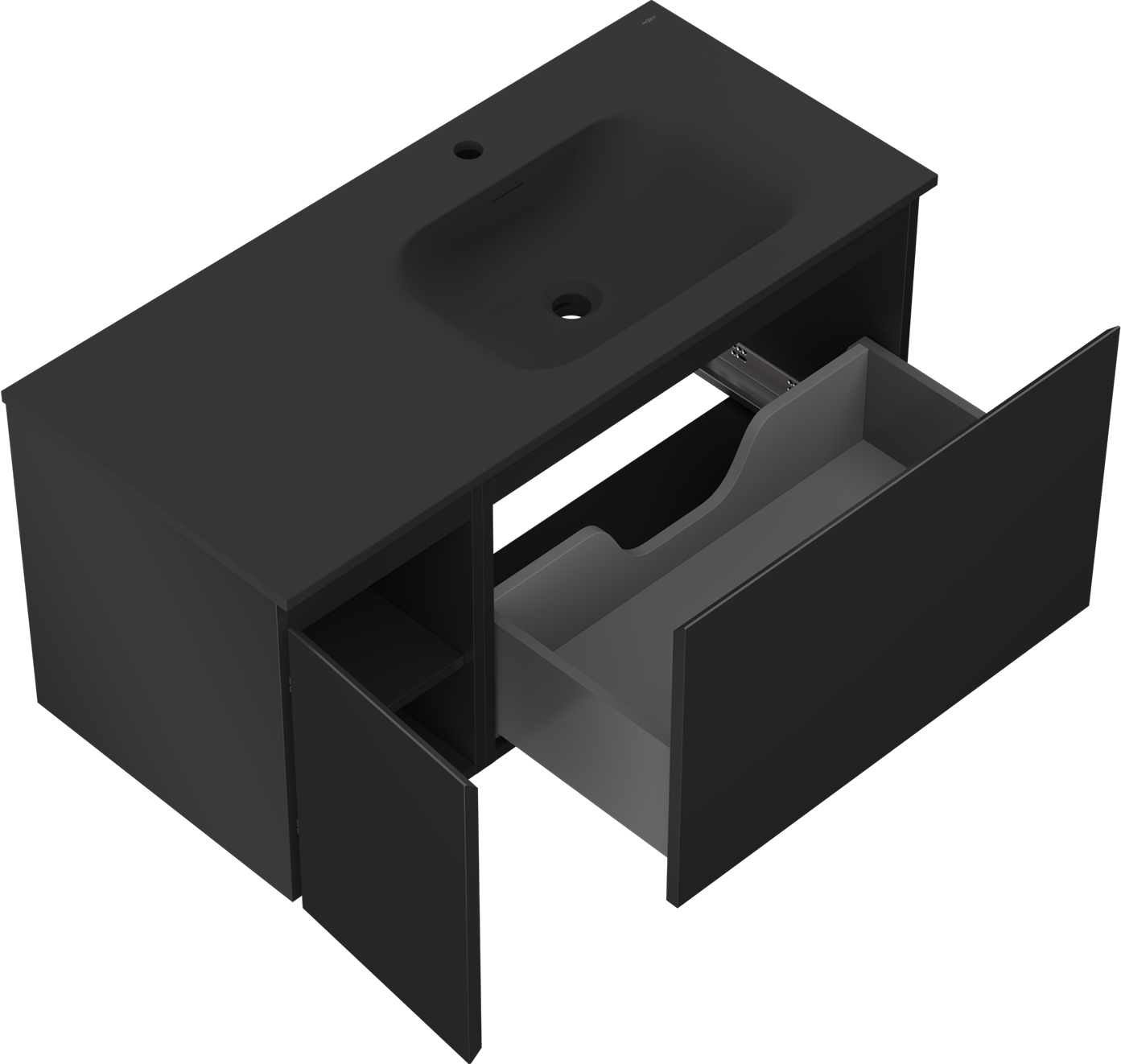 Mexen Orio ντουλάπι μπάνιου 100 cm με νιπτήρα Vela δεξιά, 1S, 1D, ματ μαύρο