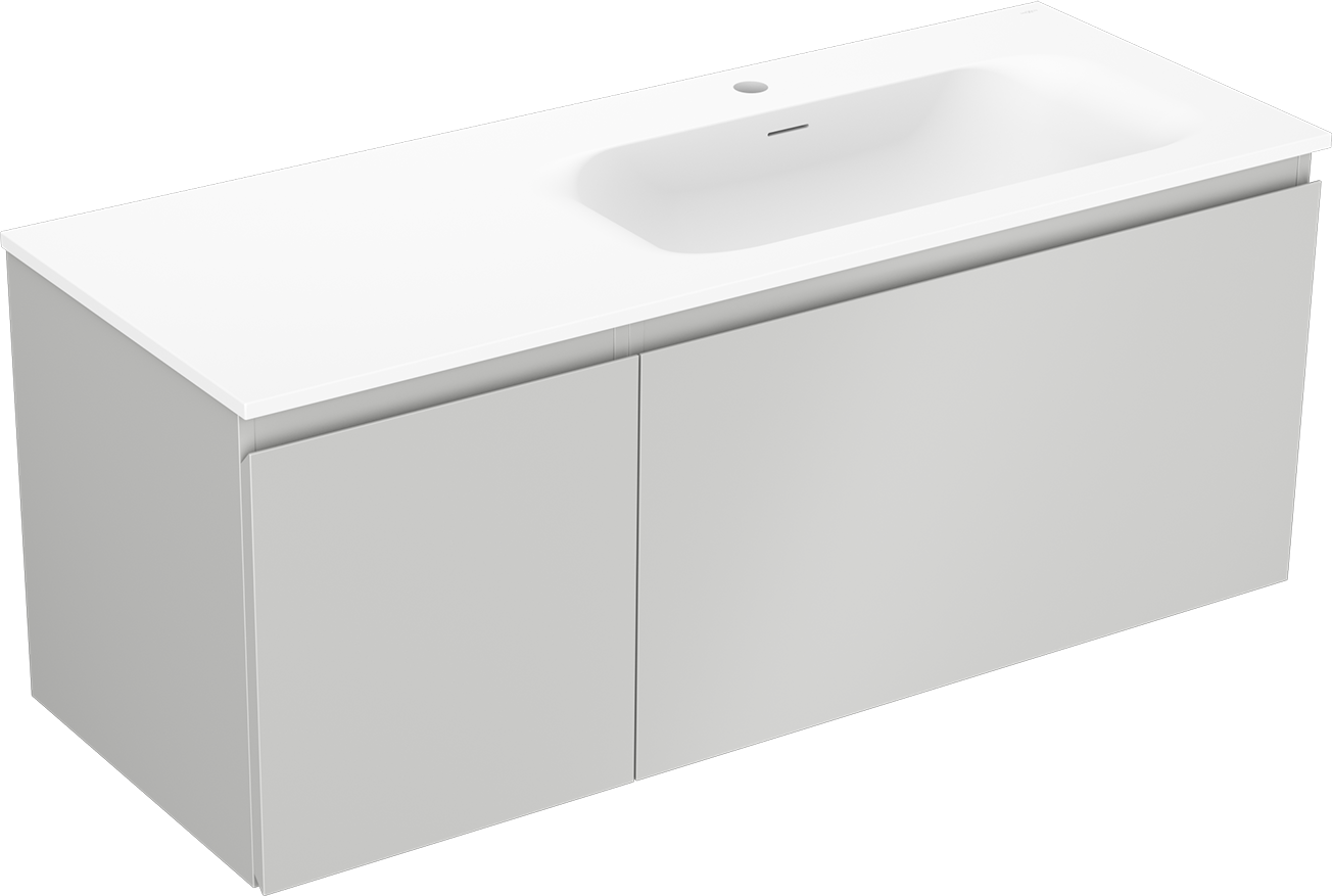 Mexen Orio ντουλάπι μπάνιου 120 cm με νιπτήρα Vela δεξί, 1Σ, 1Π, γκρι ματ/λευκό ματ