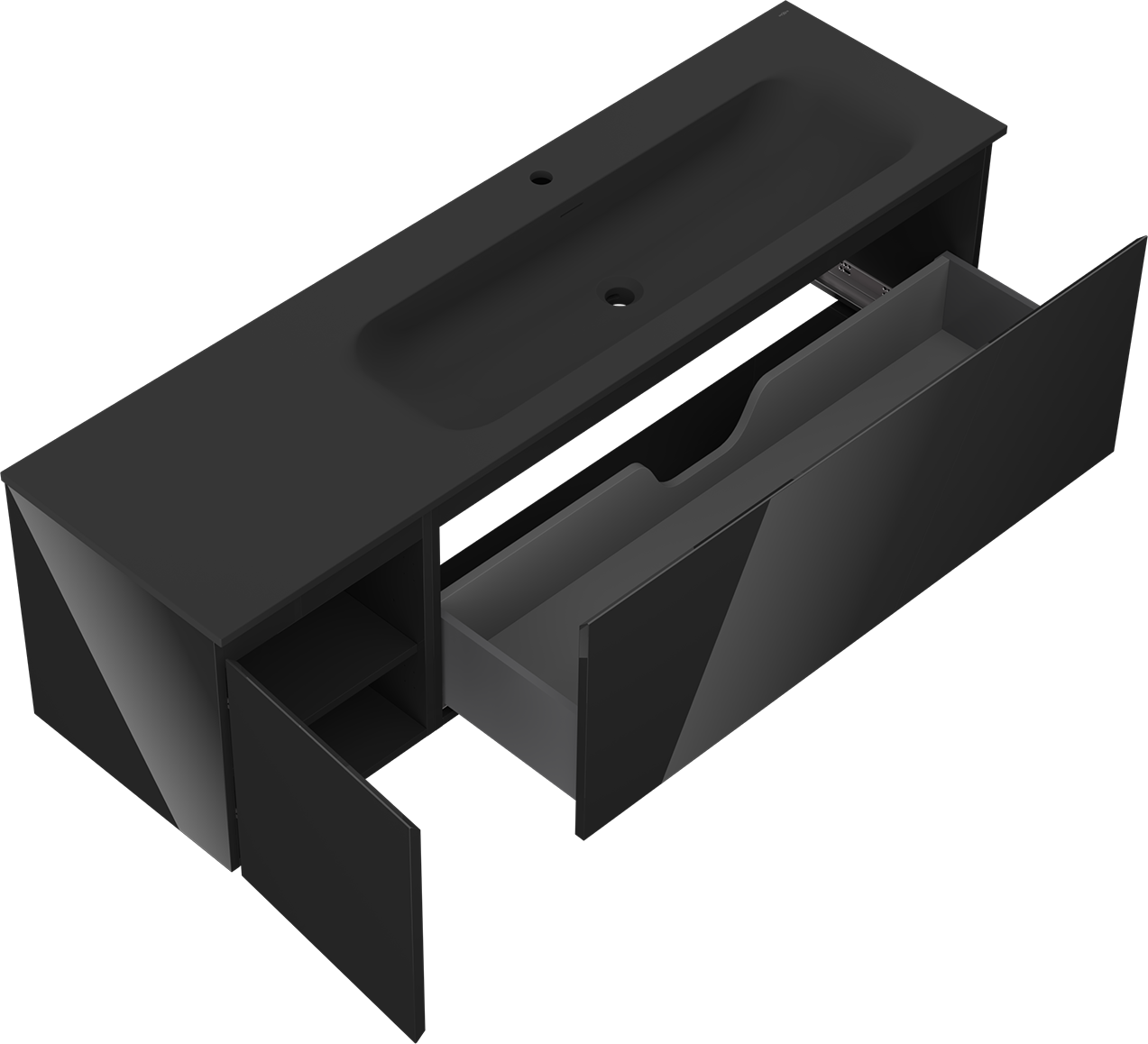 Η εγκοπή στο συρτάρι είναι σχεδιασμένη με τέτοιο τρόπο, ώστε να φιλοξενεί το σιφόνι, το οποίο είναι απαραίτητο στις εγκαταστάσεις νιπτήρων. Έτσι, το έπιπλο μπορεί να εγκατασταθεί πλήρως λειτουργικά, χωρίς την ανάγκη παραίτησης από χώρο στο συρτάρι υπέρ της εγκατάστασης.