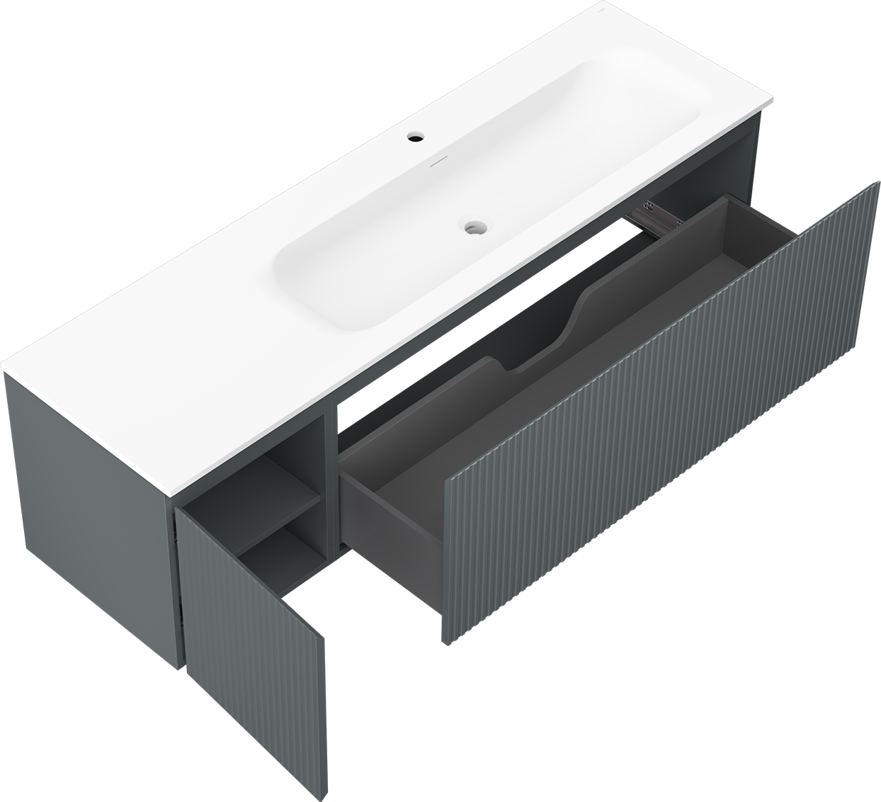 Η εγκοπή στο συρτάρι είναι σχεδιασμένη με τέτοιο τρόπο, ώστε να φιλοξενεί το σιφόνι, το οποίο είναι απαραίτητο στις εγκαταστάσεις νιπτήρων. Έτσι, το έπιπλο μπορεί να εγκατασταθεί πλήρως λειτουργικά, χωρίς την ανάγκη παραίτησης από χώρο στο συρτάρι υπέρ της εγκατάστασης.