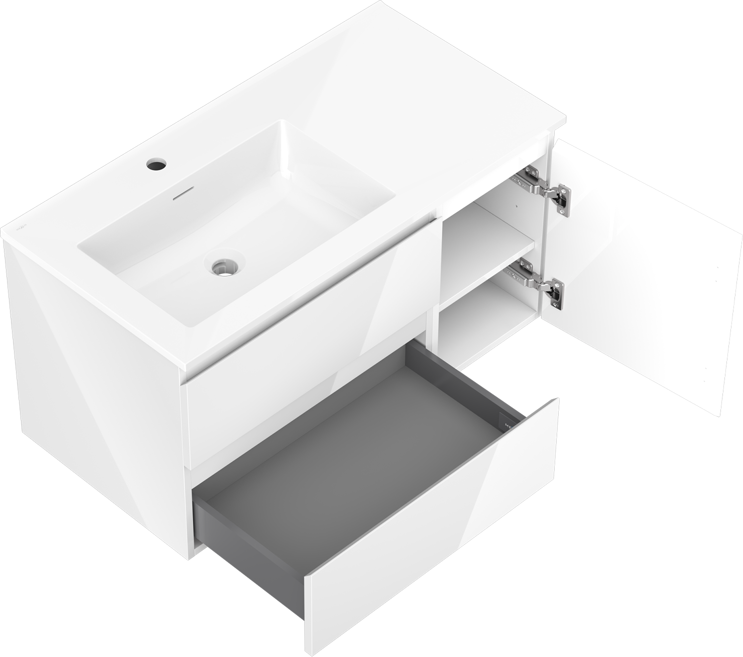 Mexen Orio ντουλάπι μπάνιου 90 εκ. με νιπτήρα Otis αριστερό, 2S, 1D, λευκό