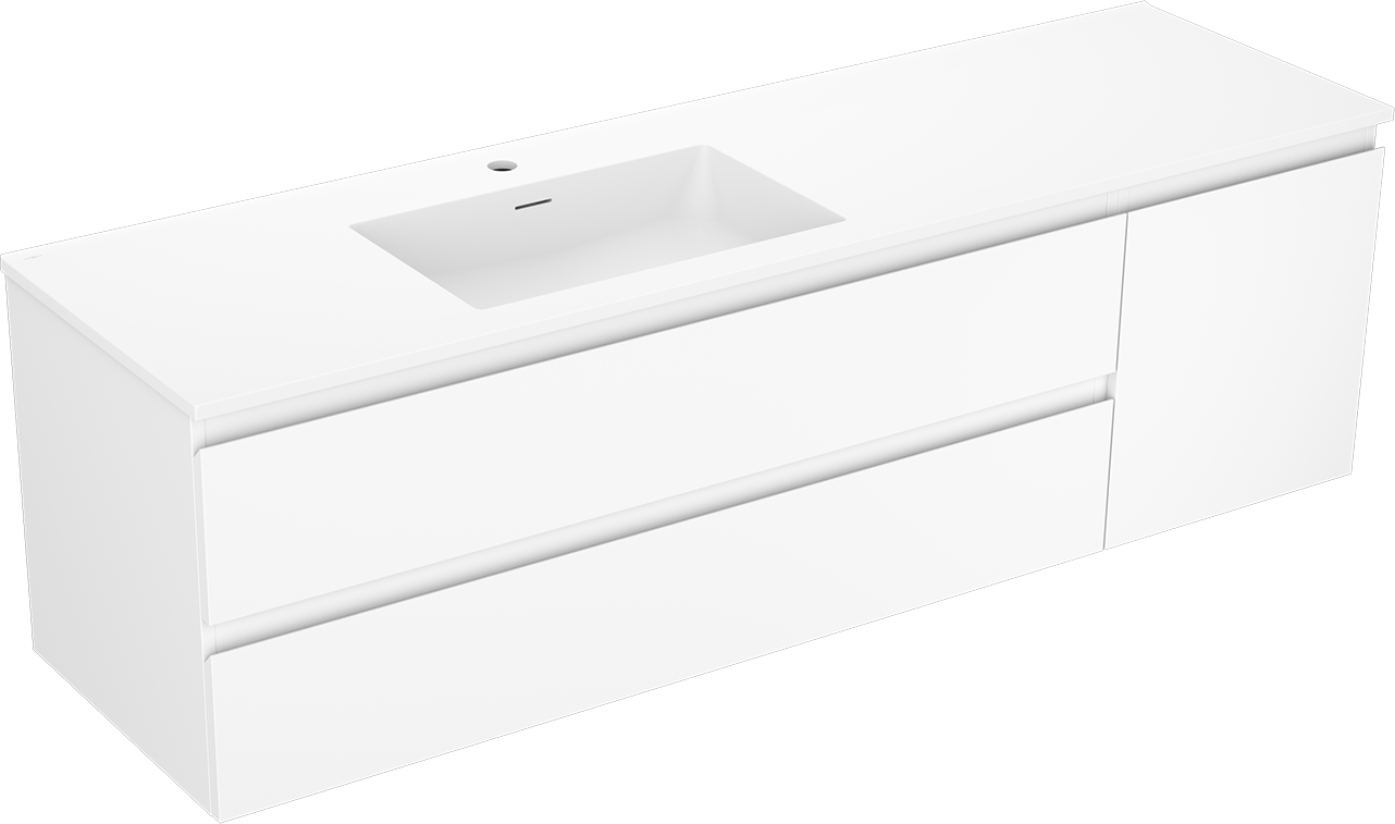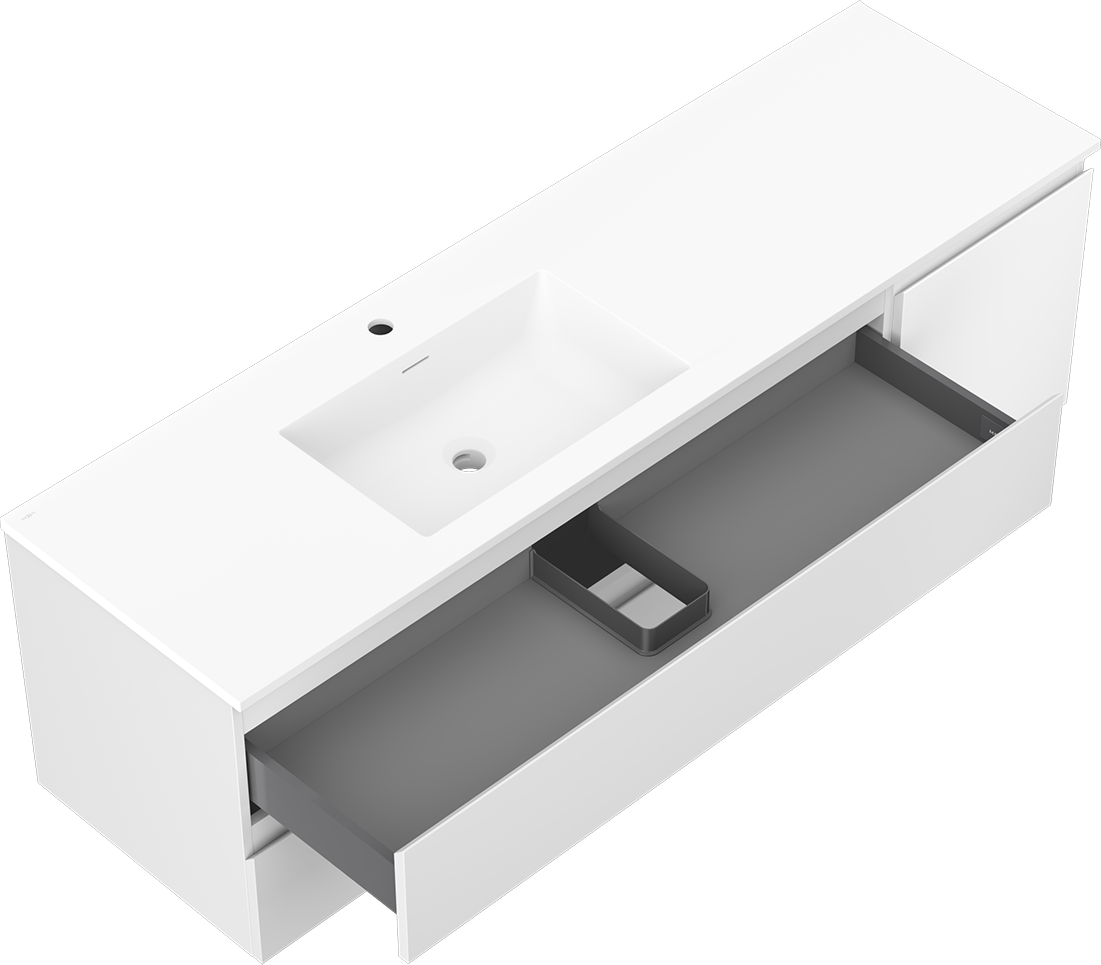 Η εγκοπή στο συρτάρι είναι σχεδιασμένη με τέτοιο τρόπο, ώστε να φιλοξενεί το σιφόνι, το οποίο είναι απαραίτητο στις εγκαταστάσεις νιπτήρων. Έτσι, το έπιπλο μπορεί να εγκατασταθεί πλήρως λειτουργικά, χωρίς την ανάγκη παραίτησης από χώρο στο συρτάρι υπέρ της εγκατάστασης.