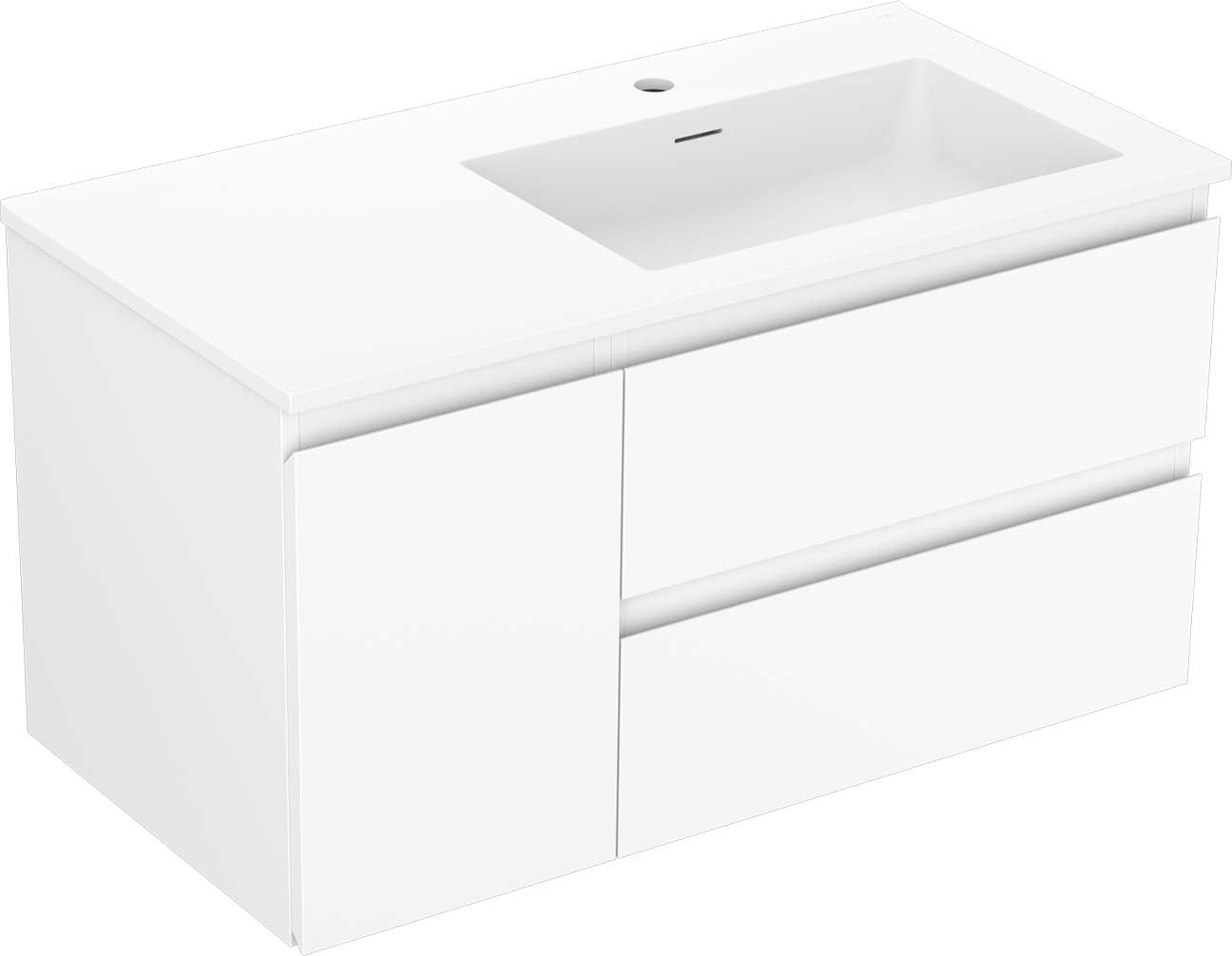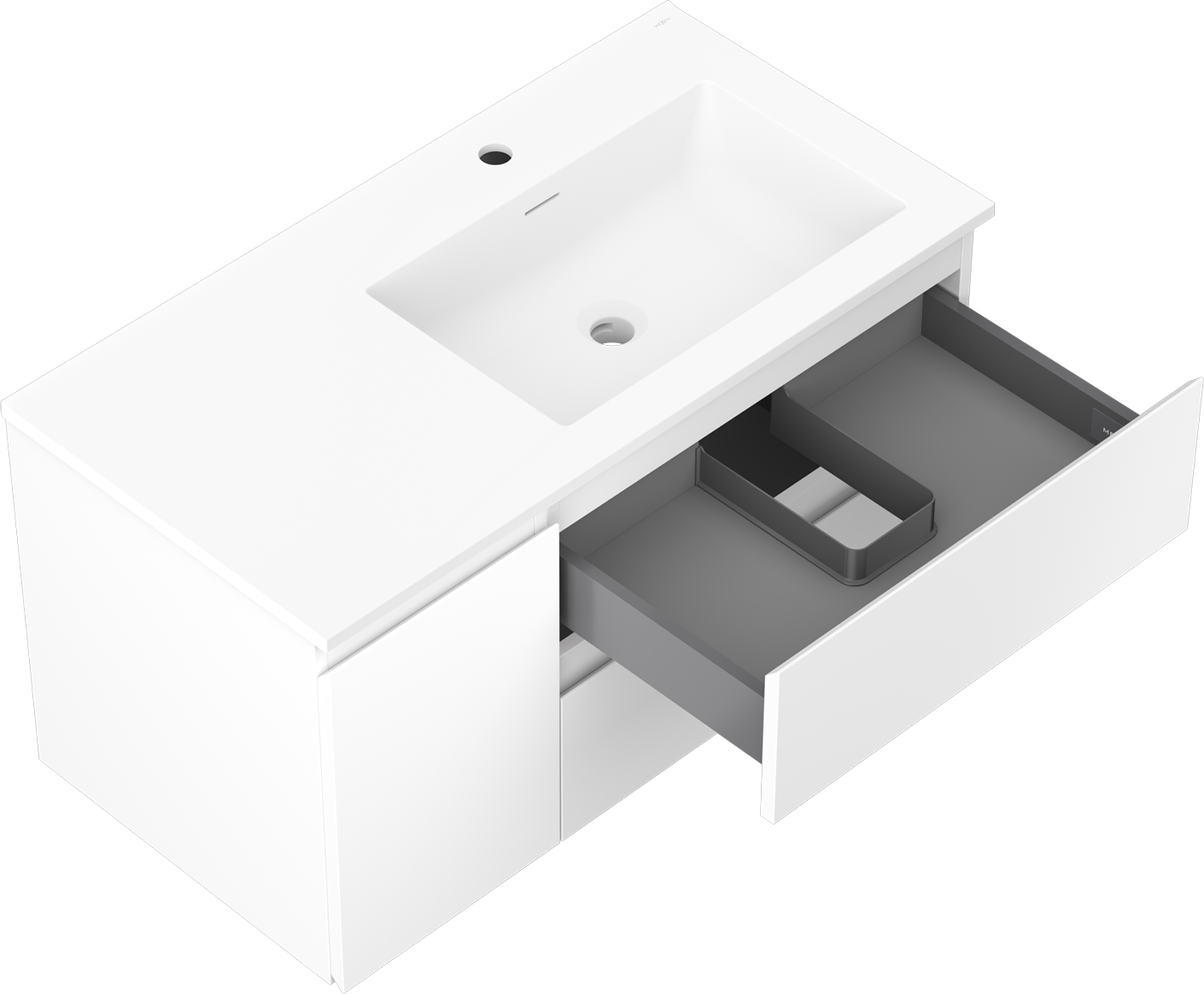 Η εγκοπή στο συρτάρι είναι σχεδιασμένη με τέτοιο τρόπο, ώστε να φιλοξενεί το σιφόνι, το οποίο είναι απαραίτητο στις εγκαταστάσεις νιπτήρων. Έτσι, το έπιπλο μπορεί να εγκατασταθεί πλήρως λειτουργικά, χωρίς την ανάγκη παραίτησης από χώρο στο συρτάρι υπέρ της εγκατάστασης.