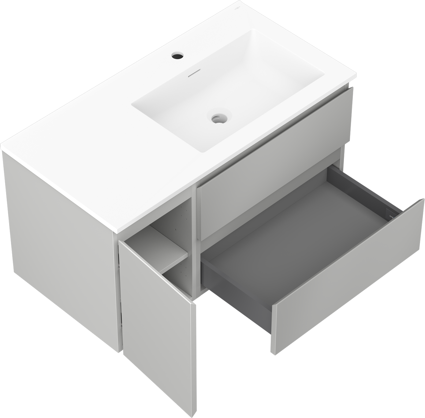 Mexen Orio ντουλάπι μπάνιου 90 cm με νιπτήρα Otis δεξιά, 2S, 1D, γκρι ματ/λευκό ματ