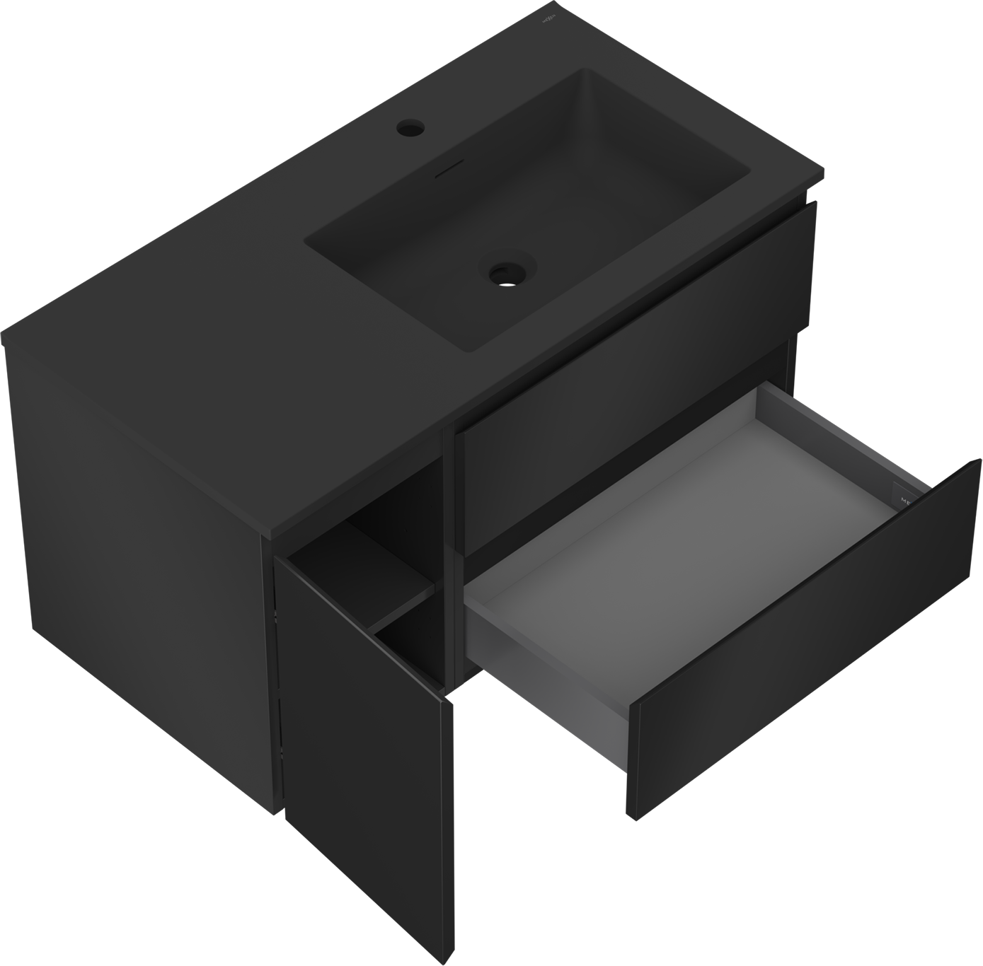 Mexen Orio ντουλάπι μπάνιου 90 cm με νιπτήρα Otis δεξιά, 2S, 1D, μαύρο ματ