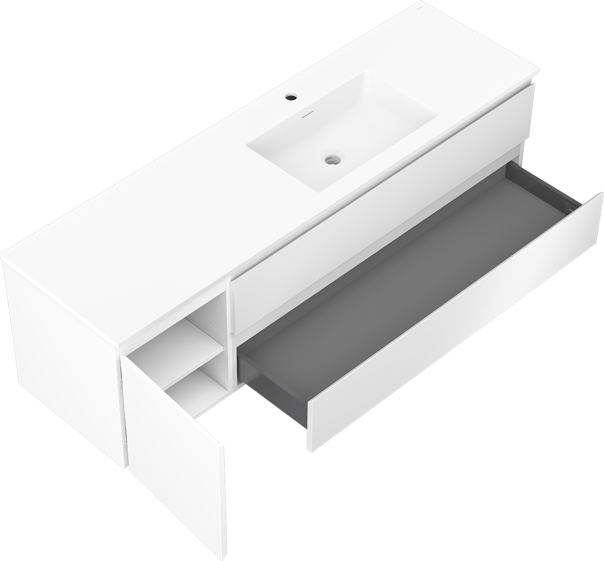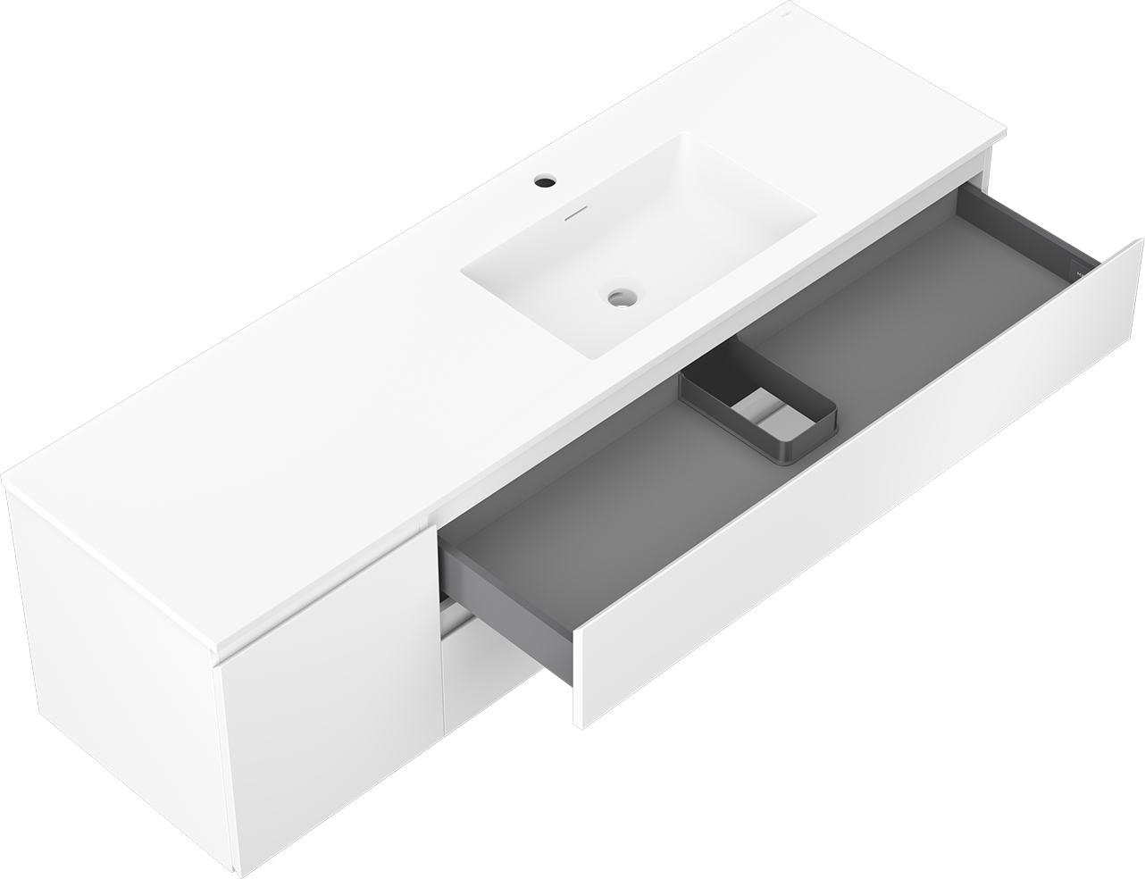 Η εγκοπή στο συρτάρι είναι σχεδιασμένη με τέτοιο τρόπο, ώστε να φιλοξενεί το σιφόνι, το οποίο είναι απαραίτητο στις εγκαταστάσεις νιπτήρων. Έτσι, το έπιπλο μπορεί να εγκατασταθεί πλήρως λειτουργικά, χωρίς την ανάγκη παραίτησης από χώρο στο συρτάρι υπέρ της εγκατάστασης.