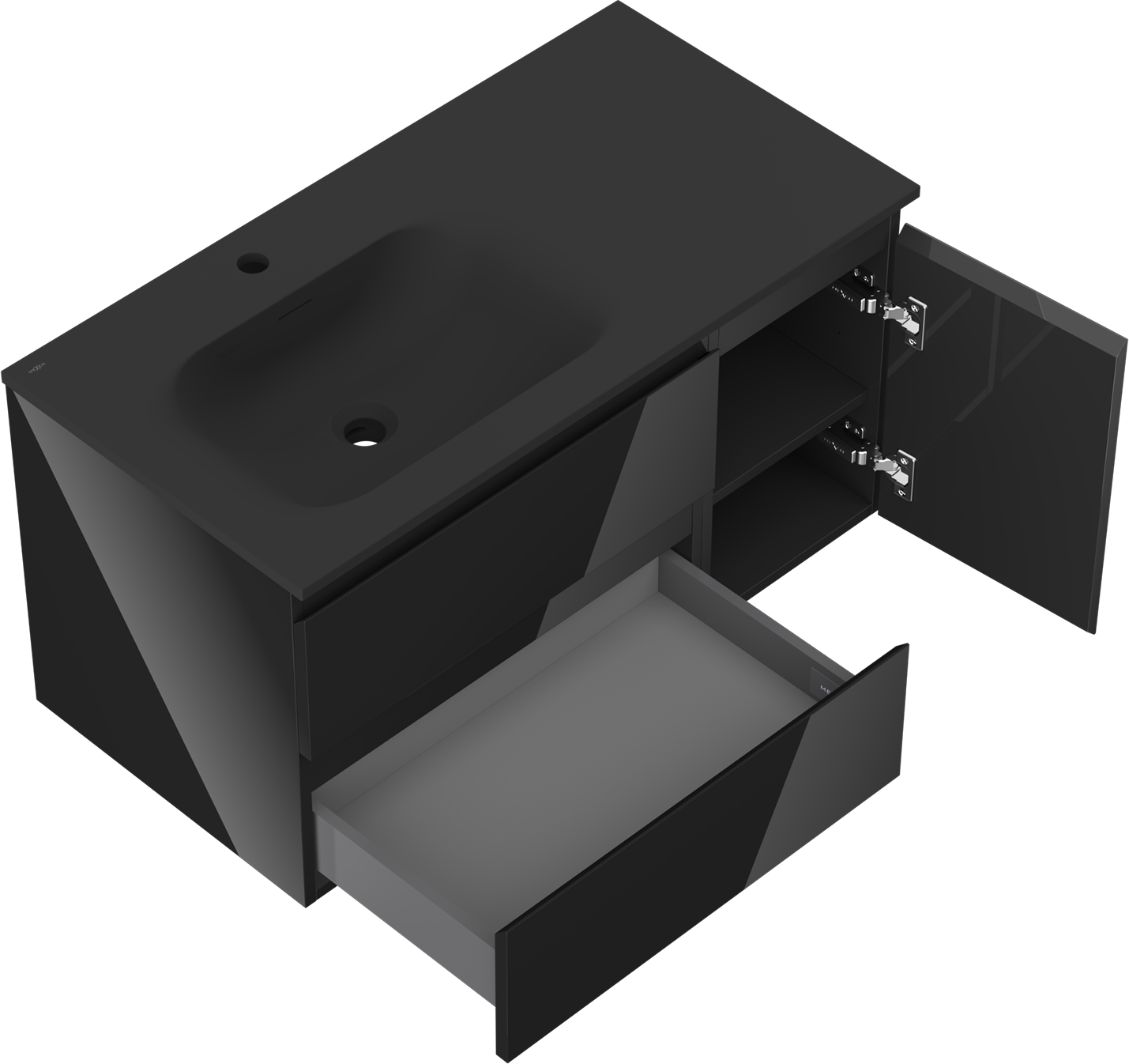 Mexen Orio ντουλάπι μπάνιου 90 cm με νιπτήρα Vela αριστερά, 2S, 1D, μαύρο