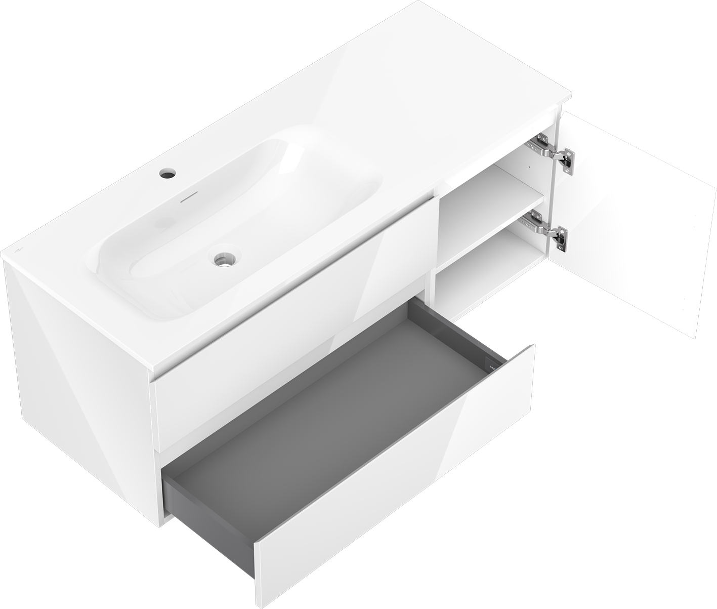 Mexen Orio ντουλάπι μπάνιου 120 εκ. με νιπτήρα Vela αριστερό, 2Σ, 1Π, λευκό