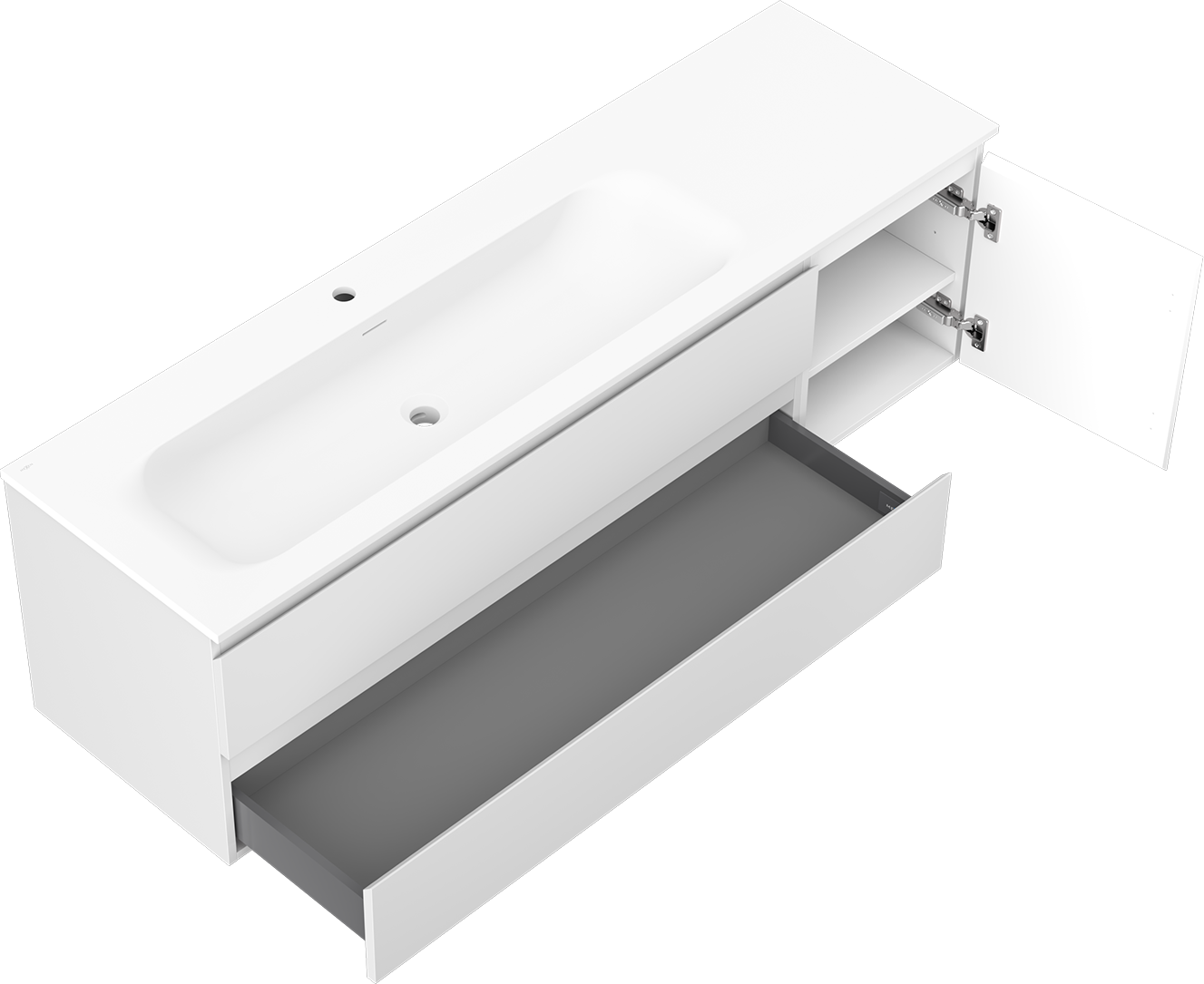 Η εγκοπή στο συρτάρι είναι σχεδιασμένη με τέτοιο τρόπο, ώστε να φιλοξενεί το σιφόνι, το οποίο είναι απαραίτητο στις εγκαταστάσεις νιπτήρων. Έτσι, το έπιπλο μπορεί να εγκατασταθεί πλήρως λειτουργικά, χωρίς την ανάγκη παραίτησης από χώρο στο συρτάρι υπέρ της εγκατάστασης.
