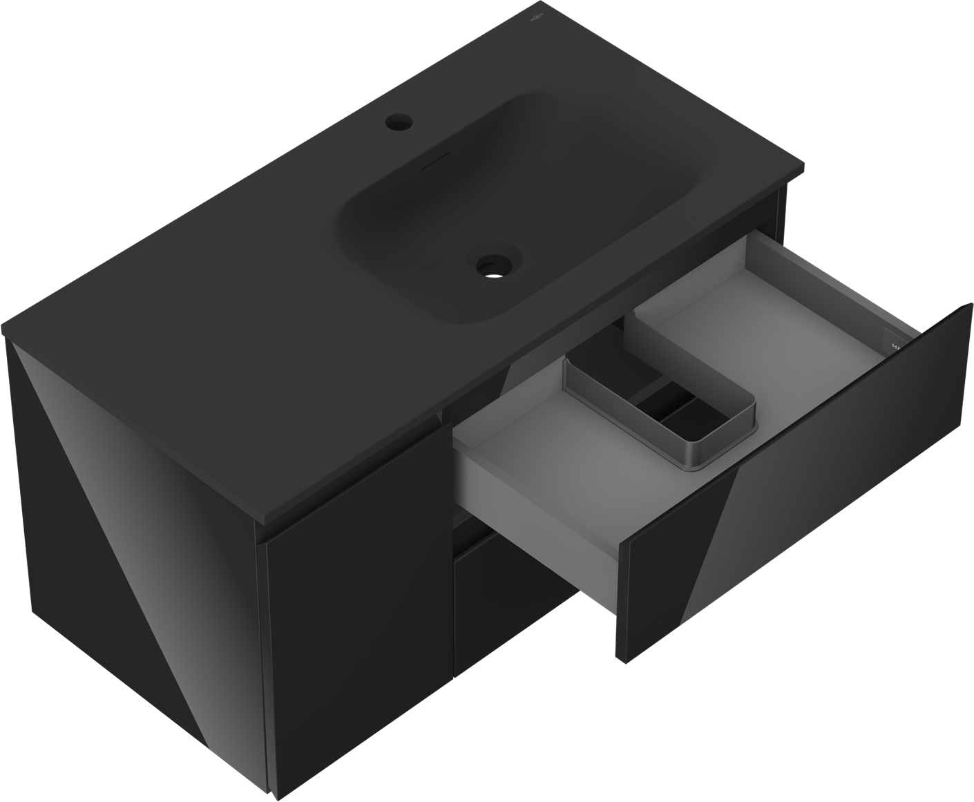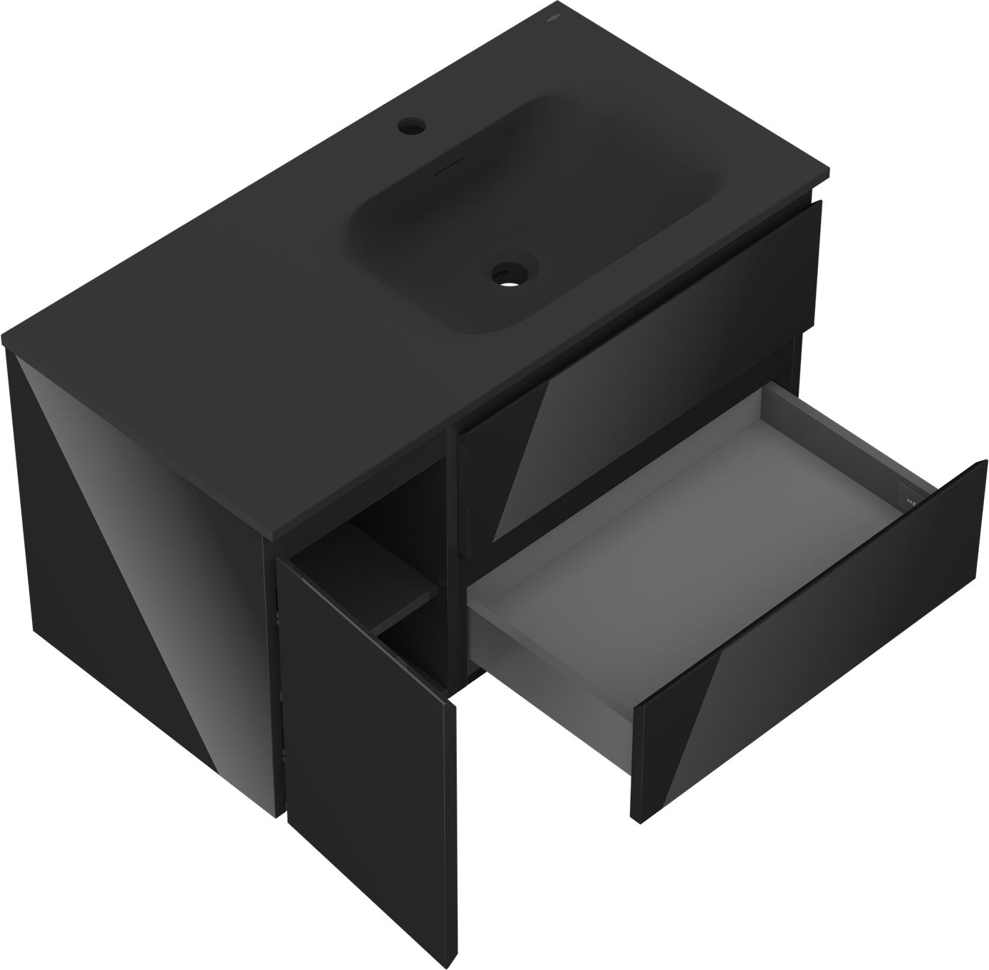 Mexen Orio ντουλάπι μπάνιου 90 εκ. με νιπτήρα Vela δεξιά, 2Σ, 1Π, μαύρη
