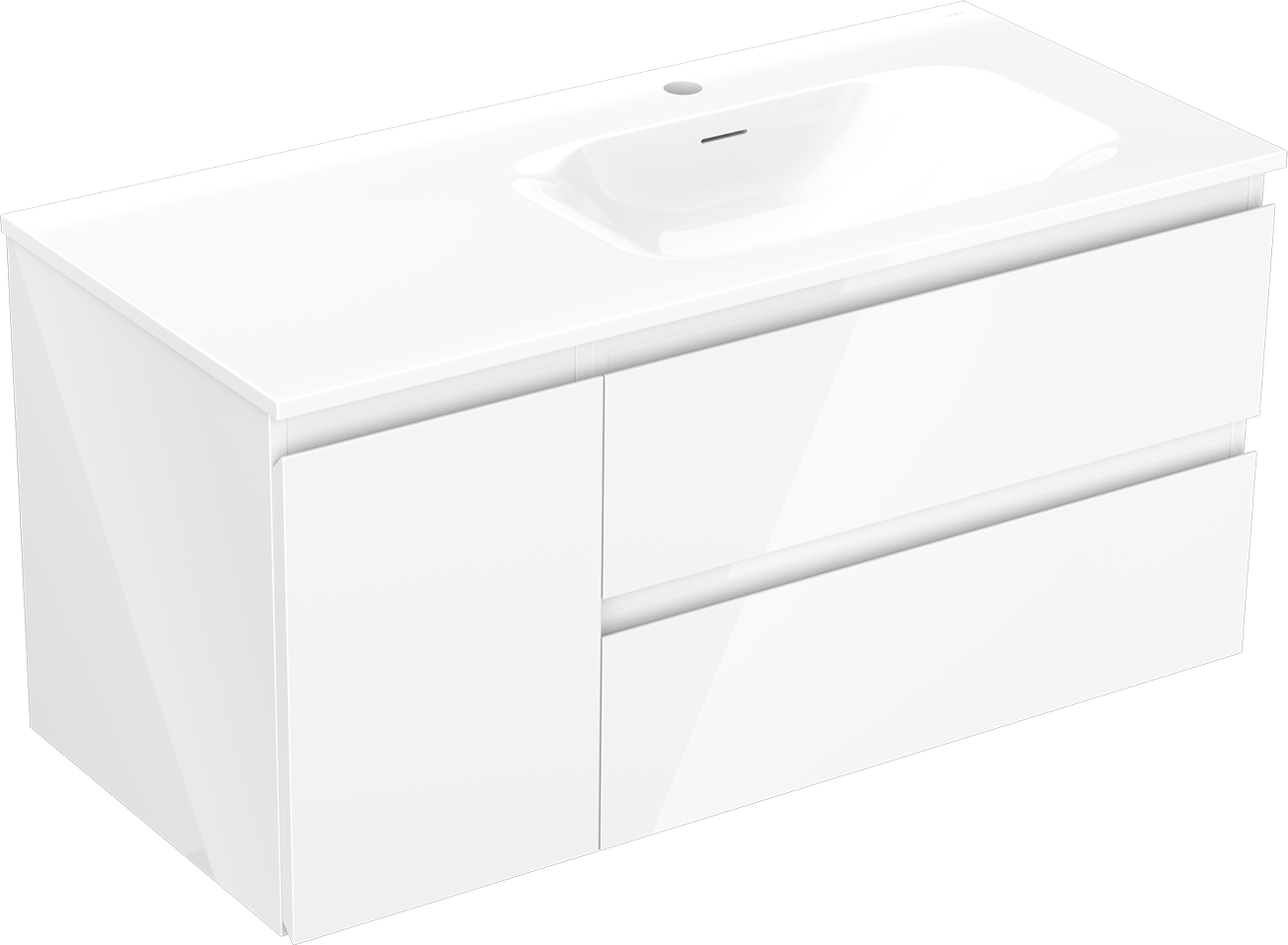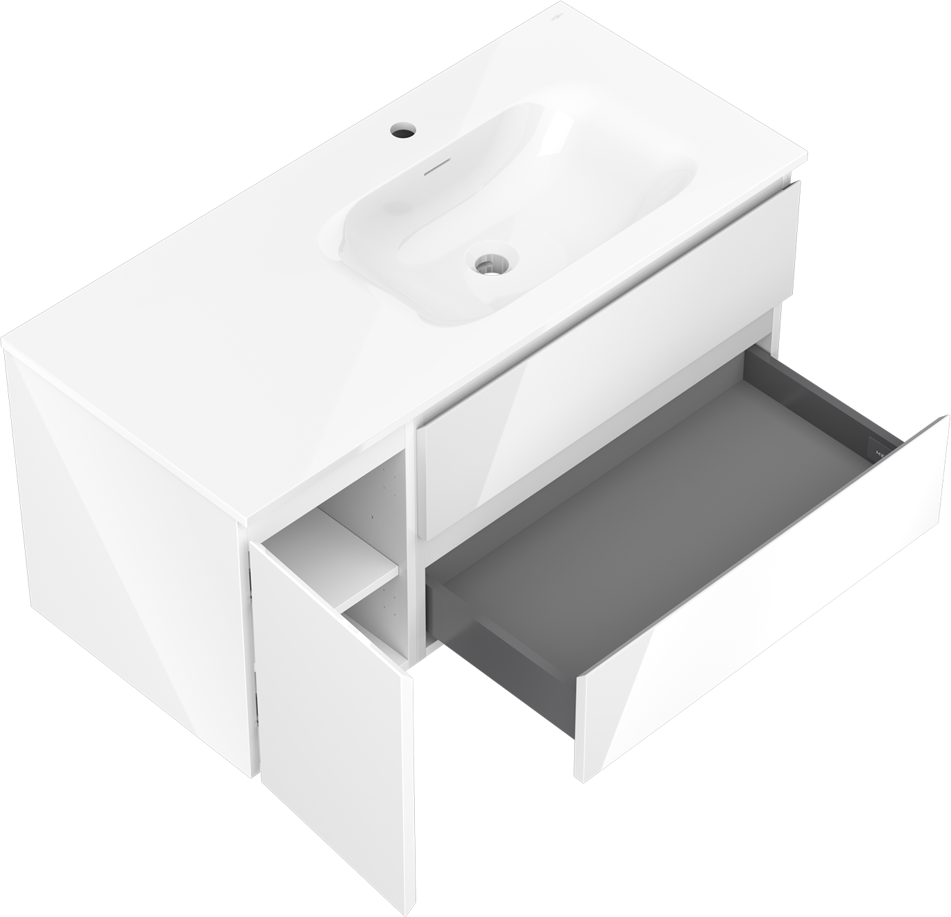 Mexen Orio ντουλάπι μπάνιου 100 cm με νιπτήρα Vela δεξί, 2S, 1D, λευκή γυαλιστερή