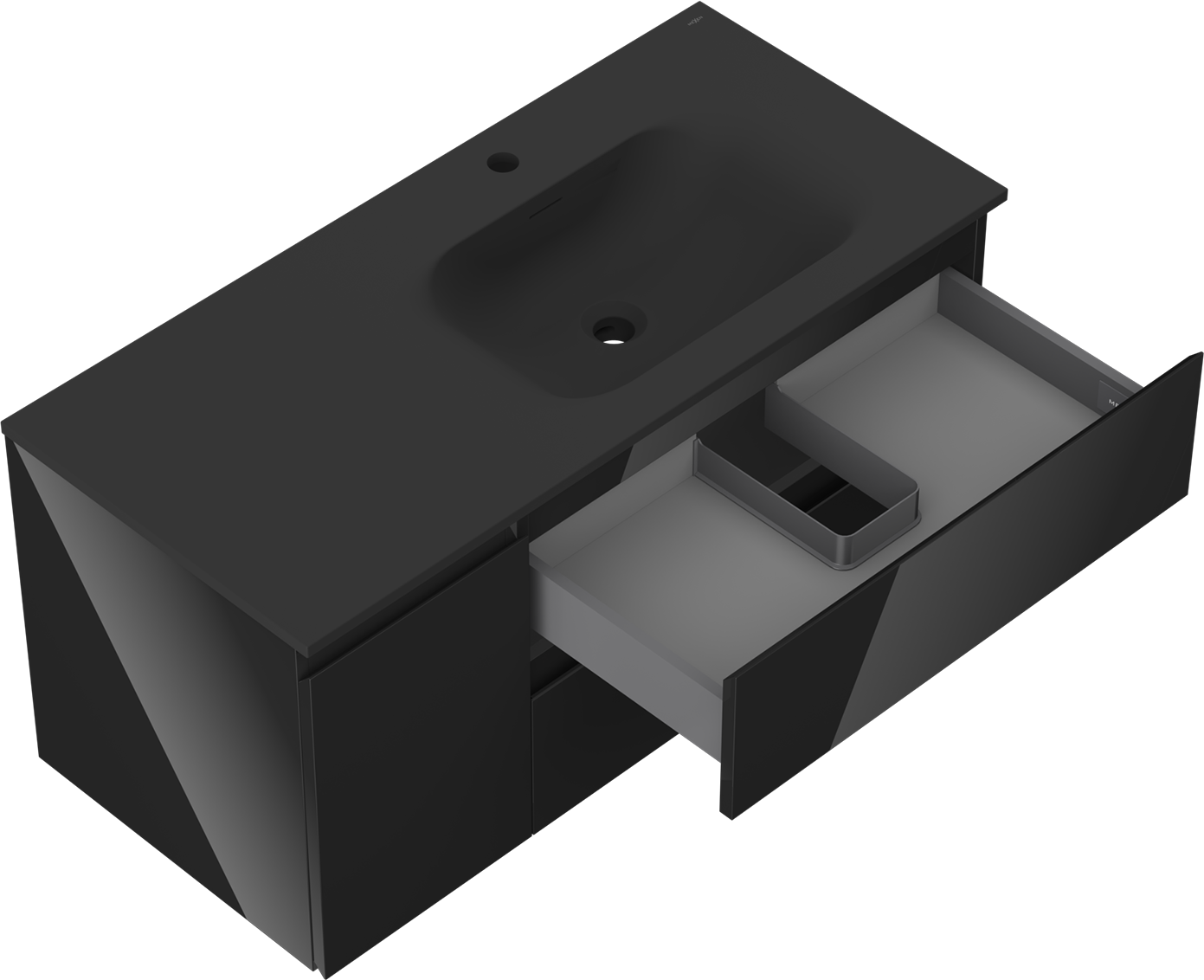Η εγκοπή στο συρτάρι είναι σχεδιασμένη με τέτοιο τρόπο, ώστε να φιλοξενεί το σιφόνι, το οποίο είναι απαραίτητο στις εγκαταστάσεις νιπτήρων. Έτσι, το έπιπλο μπορεί να εγκατασταθεί πλήρως λειτουργικά, χωρίς την ανάγκη παραίτησης από χώρο στο συρτάρι υπέρ της εγκατάστασης.
