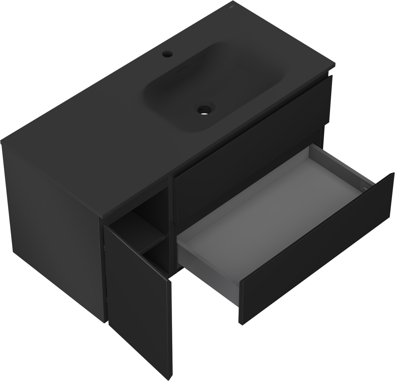 Mexen Orio ντουλάπι μπάνιου 100 cm με νιπτήρα Vela δεξί, 2S, 1D, μαύρο ματ