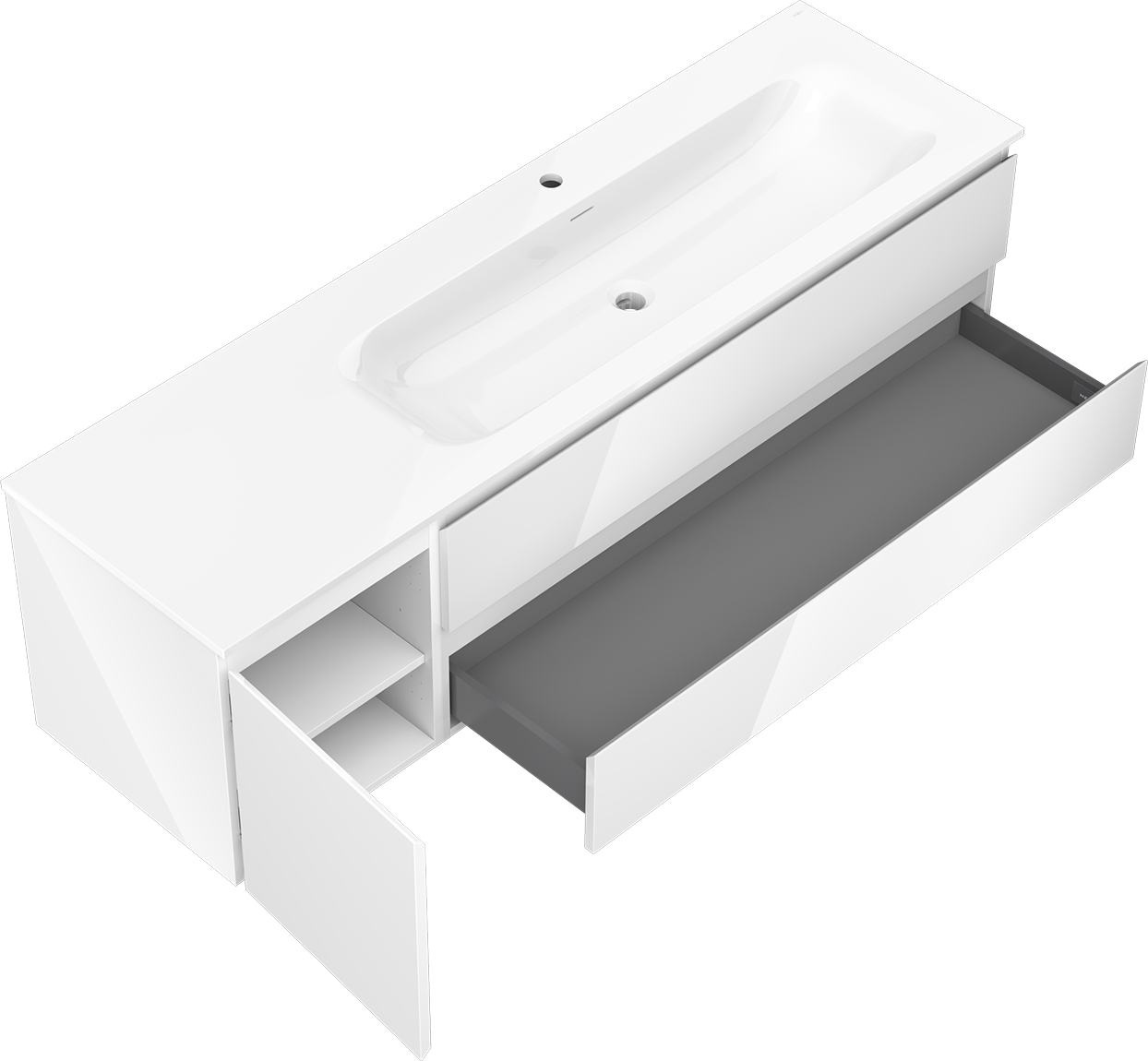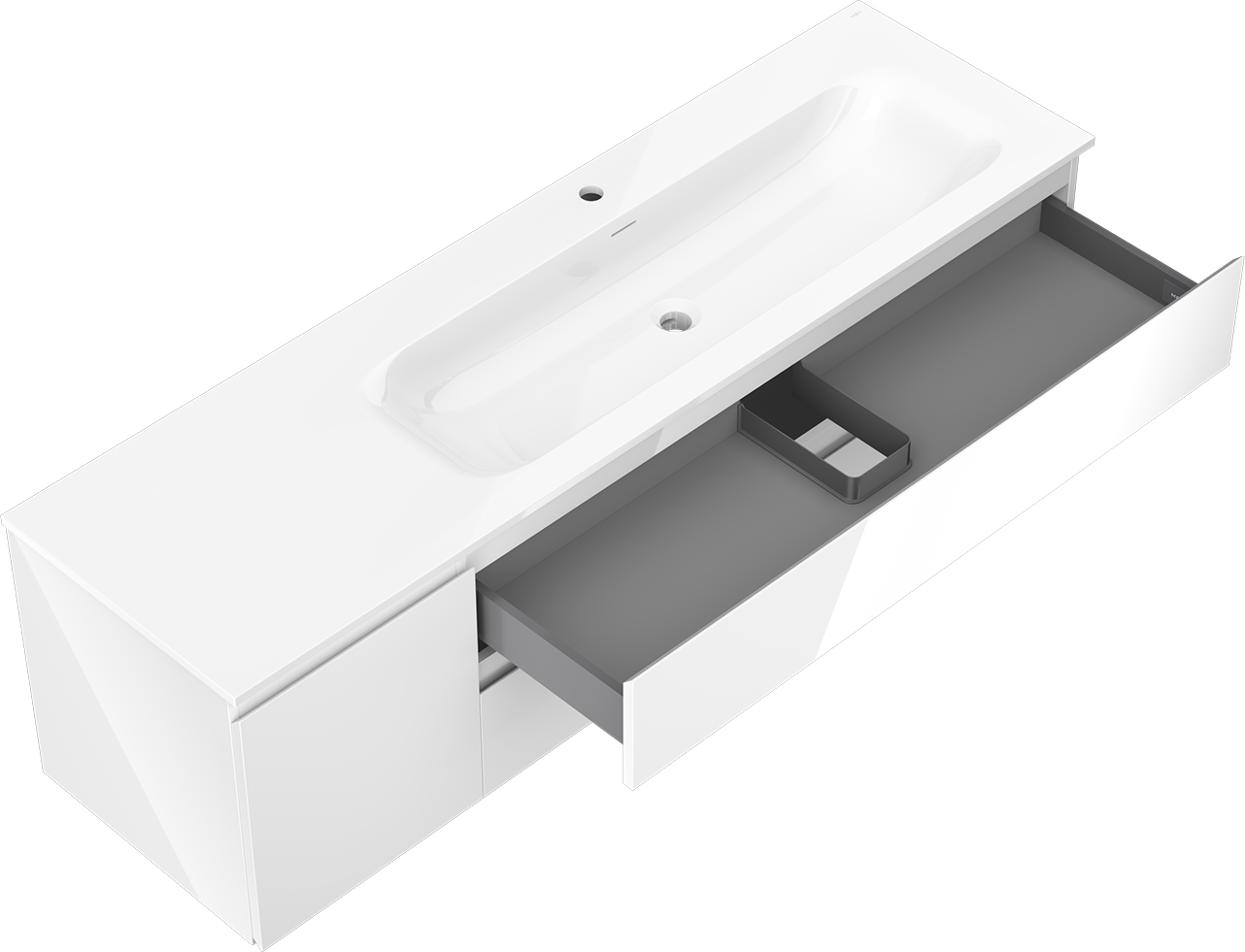 Η εγκοπή στο συρτάρι είναι σχεδιασμένη με τέτοιο τρόπο, ώστε να φιλοξενεί το σιφόνι, το οποίο είναι απαραίτητο στις εγκαταστάσεις νιπτήρων. Έτσι, το έπιπλο μπορεί να εγκατασταθεί πλήρως λειτουργικά, χωρίς την ανάγκη παραίτησης από χώρο στο συρτάρι υπέρ της εγκατάστασης.