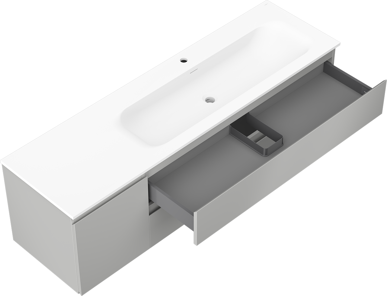 Η εγκοπή στο συρτάρι είναι σχεδιασμένη με τέτοιο τρόπο, ώστε να φιλοξενεί το σιφόνι, το οποίο είναι απαραίτητο στις εγκαταστάσεις νιπτήρων. Έτσι, το έπιπλο μπορεί να εγκατασταθεί πλήρως λειτουργικά, χωρίς την ανάγκη παραίτησης από χώρο στο συρτάρι υπέρ της εγκατάστασης.