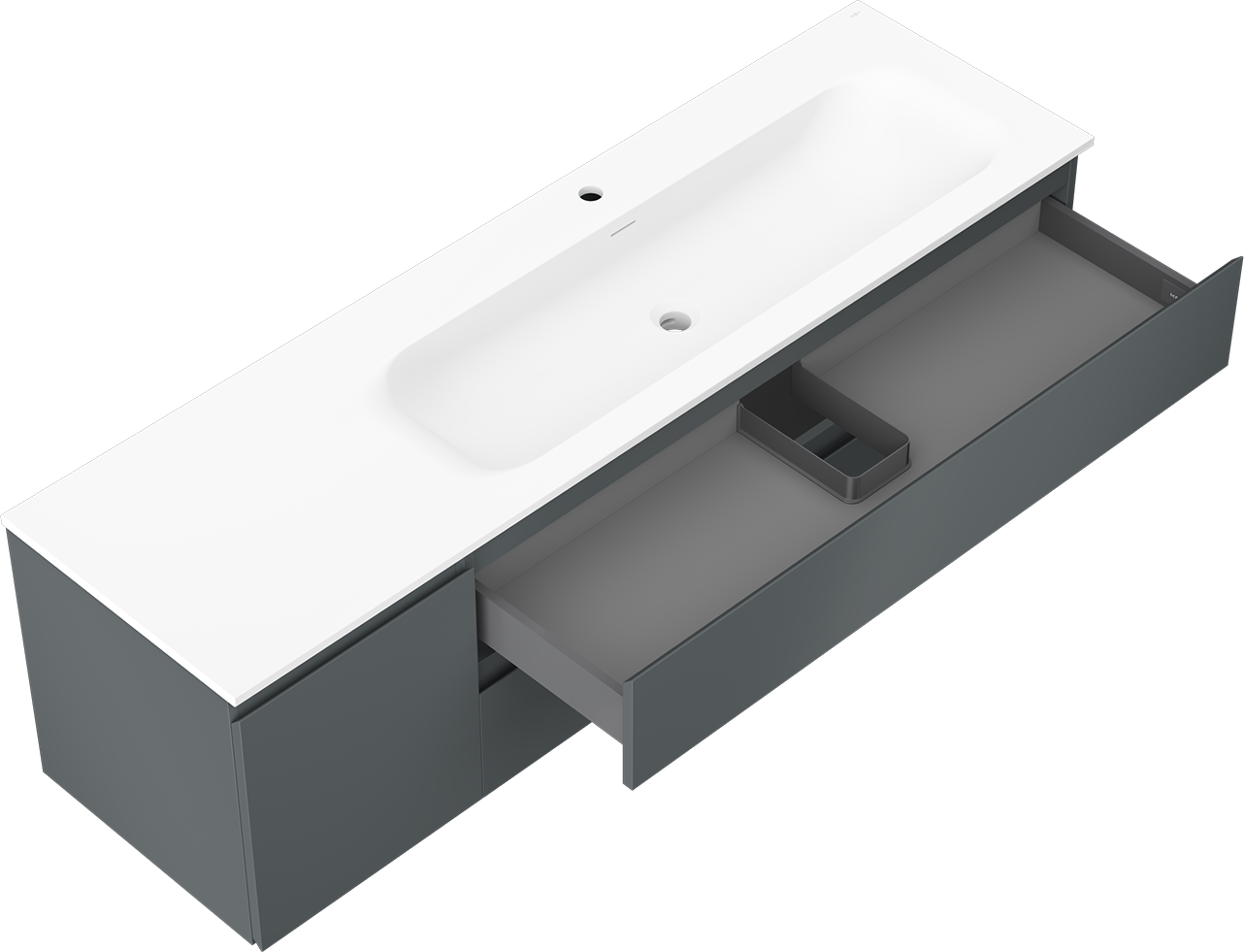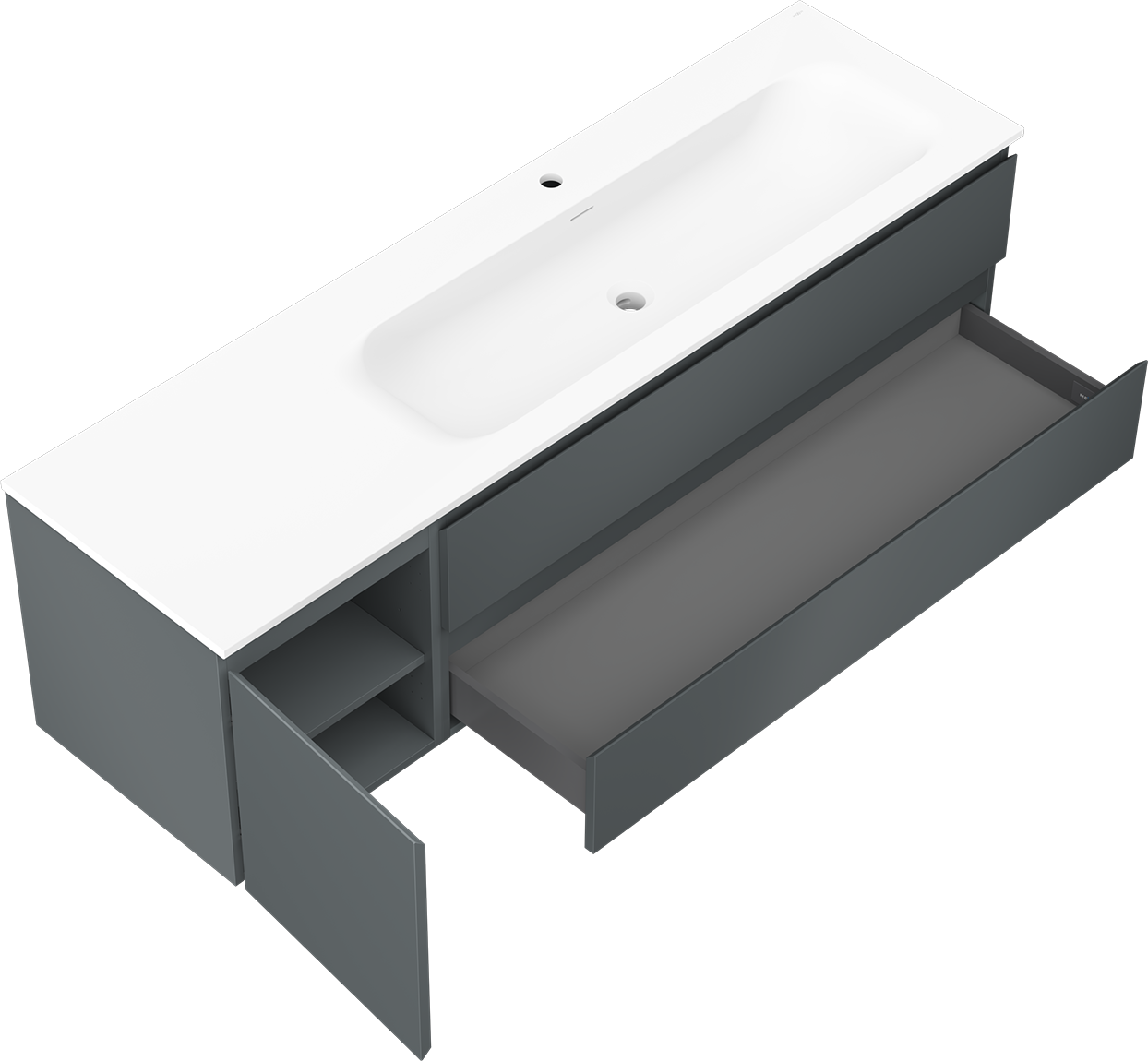 Η εγκοπή στο συρτάρι είναι σχεδιασμένη με τέτοιο τρόπο, ώστε να φιλοξενεί το σιφόνι, το οποίο είναι απαραίτητο στις εγκαταστάσεις νιπτήρων. Έτσι, το έπιπλο μπορεί να εγκατασταθεί πλήρως λειτουργικά, χωρίς την ανάγκη παραίτησης από χώρο στο συρτάρι υπέρ της εγκατάστασης.