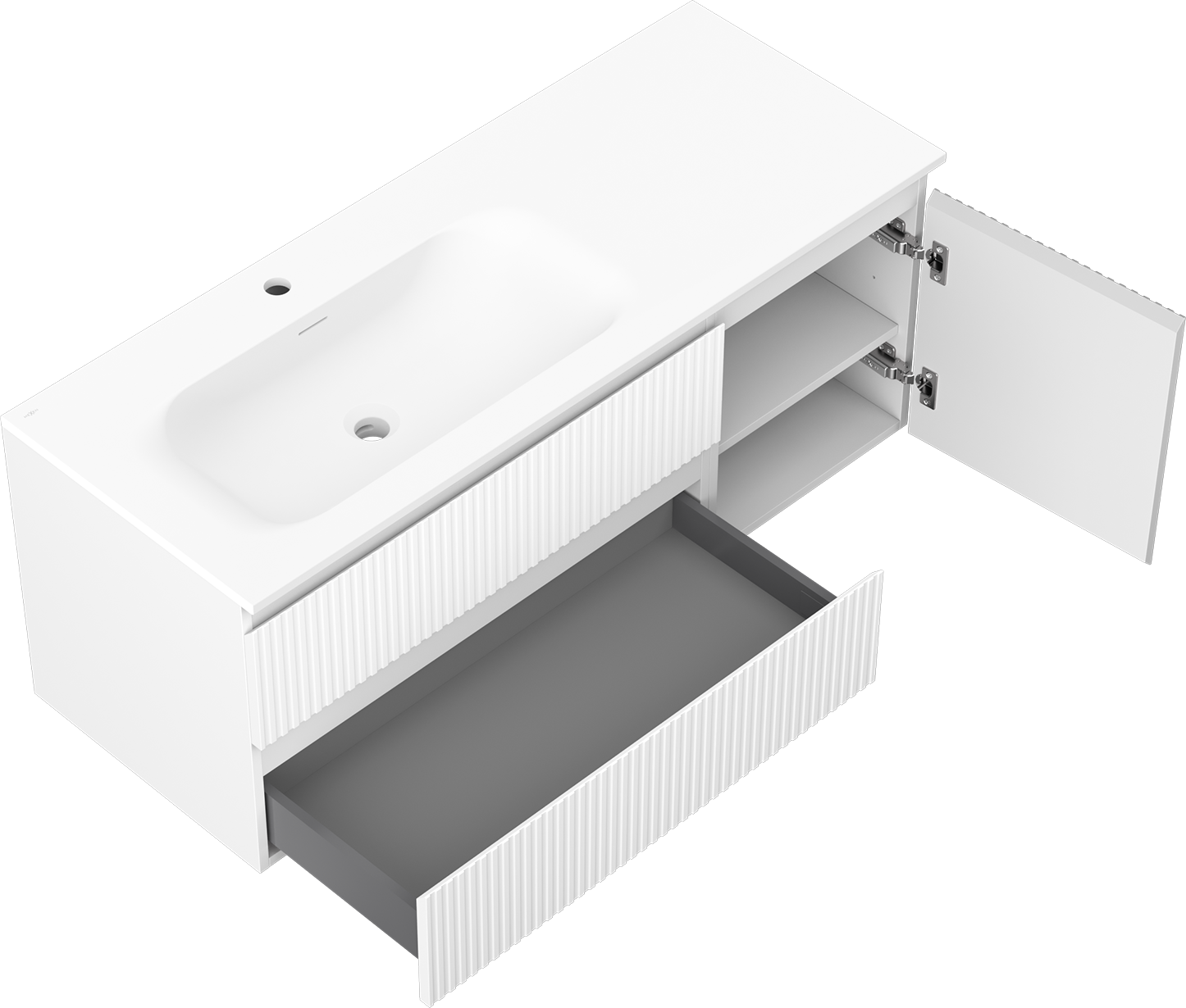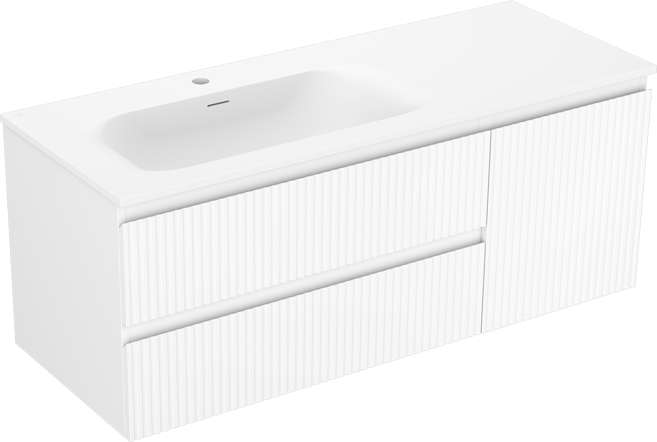 Mexen Rivel ντουλάπι μπάνιου 120 cm με νιπτήρα Vela αριστερό, 2S, 1D, αυλακωμένο,