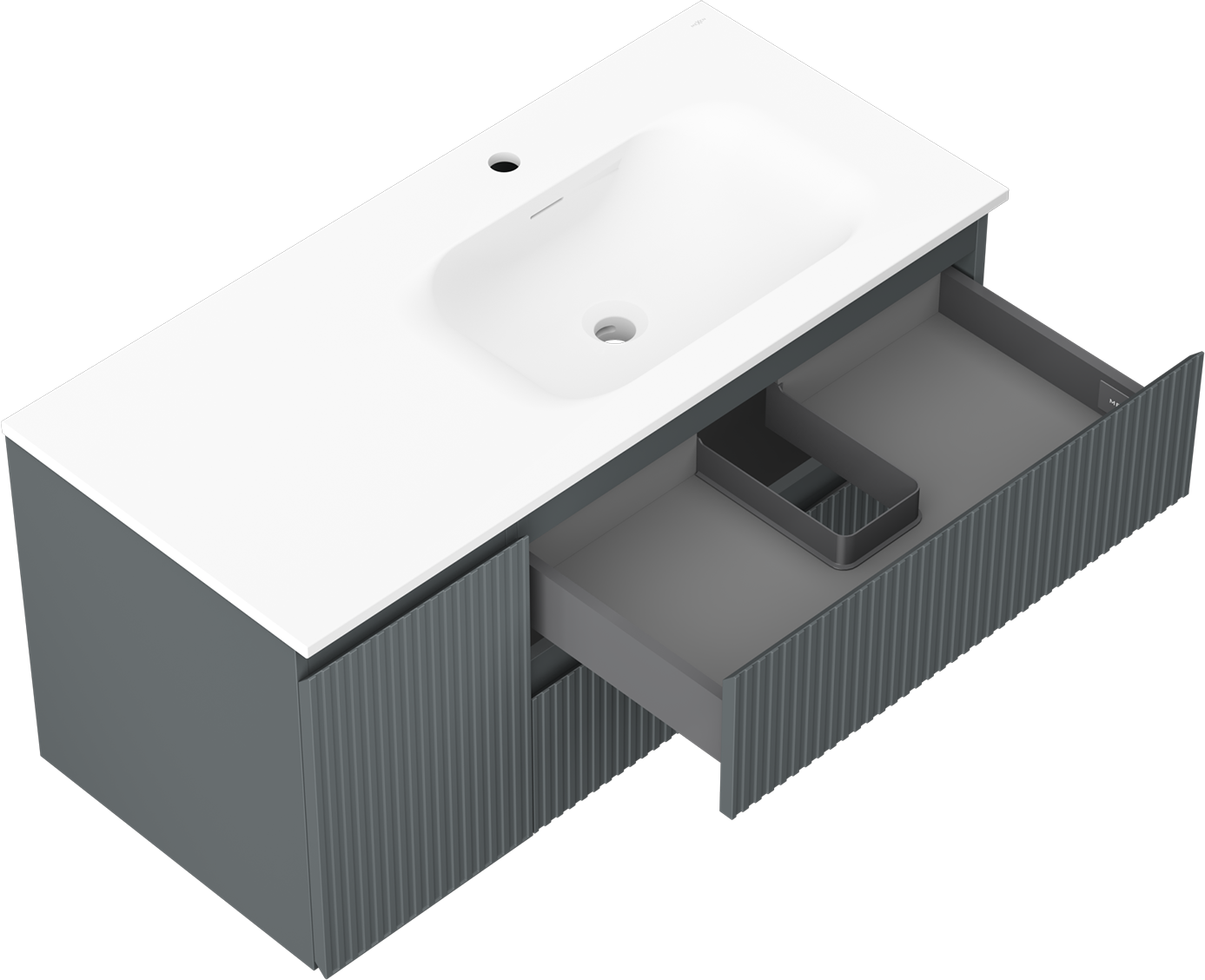 Η εγκοπή στο συρτάρι είναι σχεδιασμένη με τέτοιο τρόπο, ώστε να φιλοξενεί το σιφόνι, το οποίο είναι απαραίτητο στις εγκαταστάσεις νιπτήρων. Έτσι, το έπιπλο μπορεί να εγκατασταθεί πλήρως λειτουργικά, χωρίς την ανάγκη παραίτησης από χώρο στο συρτάρι υπέρ της εγκατάστασης.