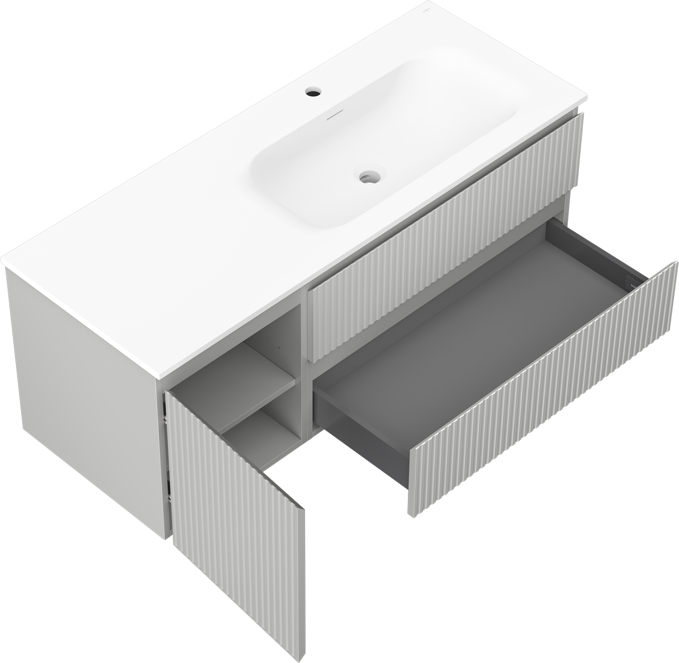 Mexen Rivel ντουλάπι μπάνιου 120 cm με νιπτήρα Vela δεξιό, 2S, 1D, με αυλακώσεις,