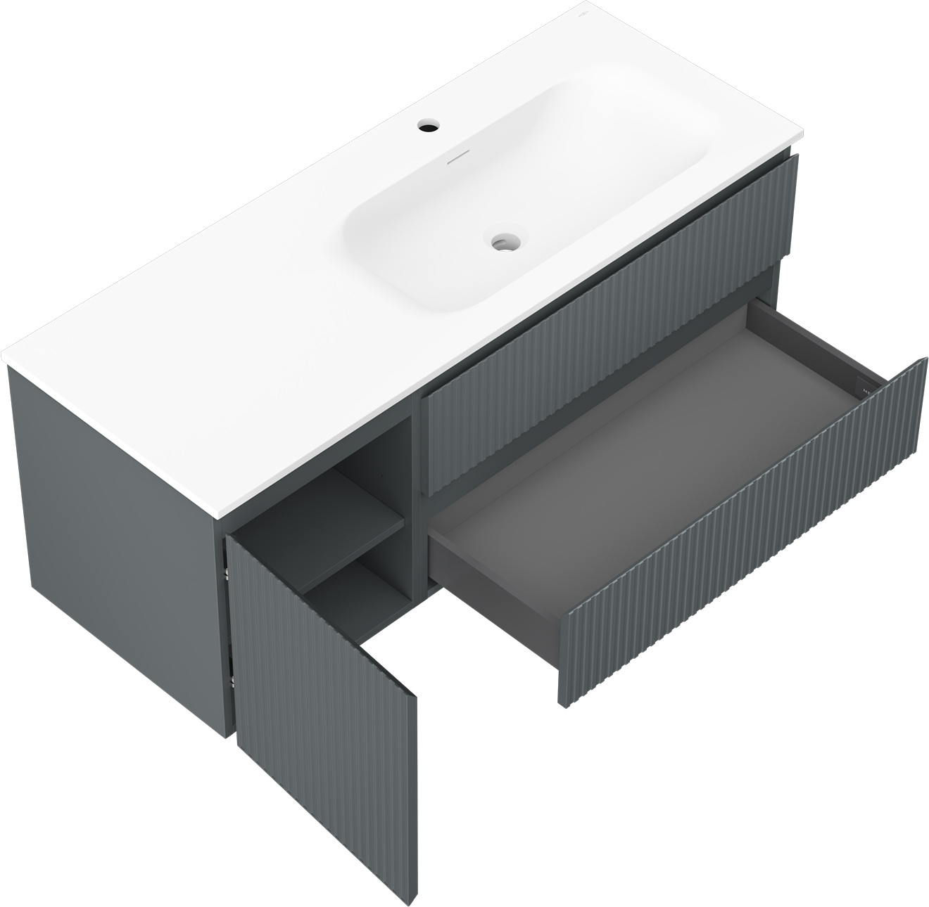Mexen Rivel ντουλάπι μπάνιου 120 εκ με νιπτήρα Vela δεξιά, 2S, 1D, πτυχές,