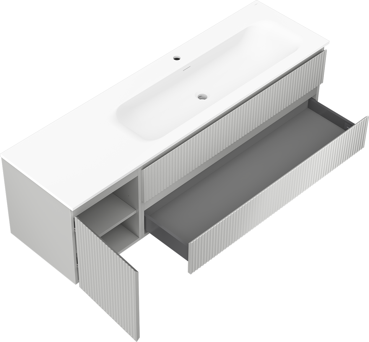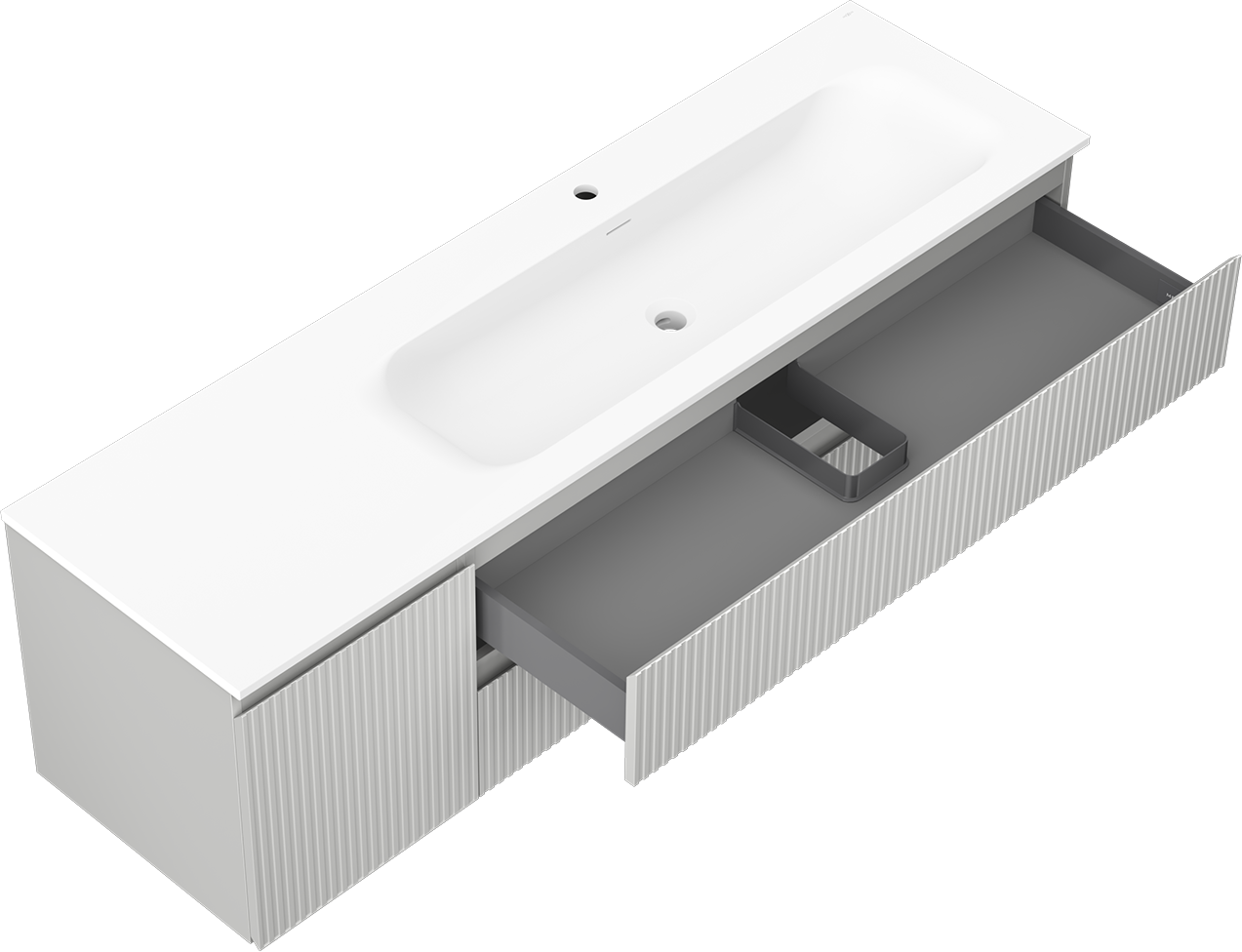 Η εγκοπή στο συρτάρι είναι σχεδιασμένη με τέτοιο τρόπο, ώστε να φιλοξενεί το σιφόνι, το οποίο είναι απαραίτητο στις εγκαταστάσεις νιπτήρων. Έτσι, το έπιπλο μπορεί να εγκατασταθεί πλήρως λειτουργικά, χωρίς την ανάγκη παραίτησης από χώρο στο συρτάρι υπέρ της εγκατάστασης.