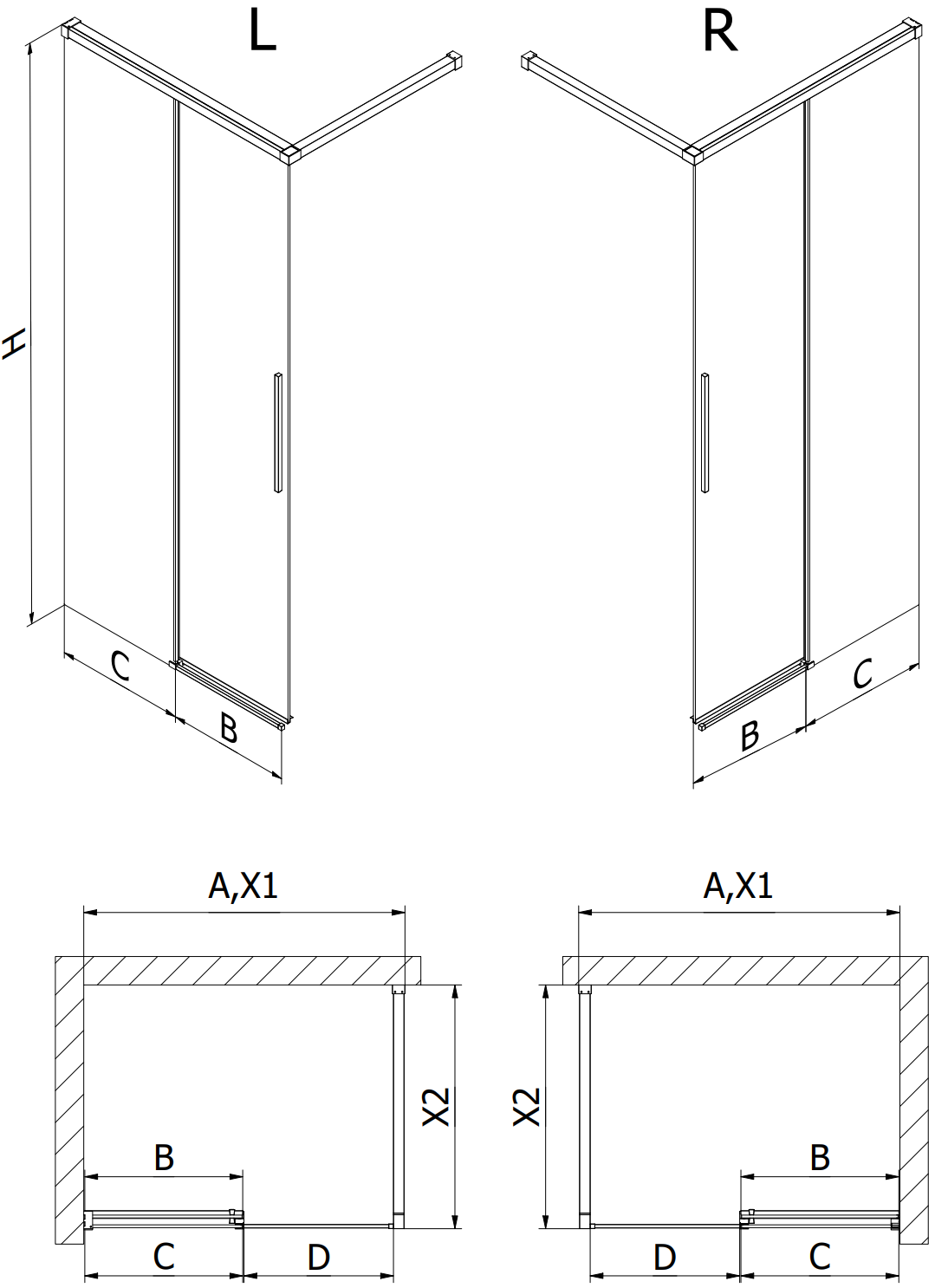 Χάρη στη χρήση ενός καθολικού συστήματος στήριξης, οι πόρτες ντους μπορούν να τοποθετηθούν είτε από τη δεξιά είτε από την αριστερή πλευρά, ανάλογα με τις ανάγκες. Έτσι μπορείτε να σχεδιάσετε με ευκολία ένα ντους προσαρμοσμένο στον χώρο του μπάνιου.