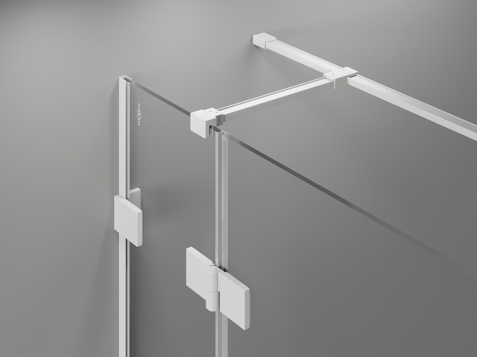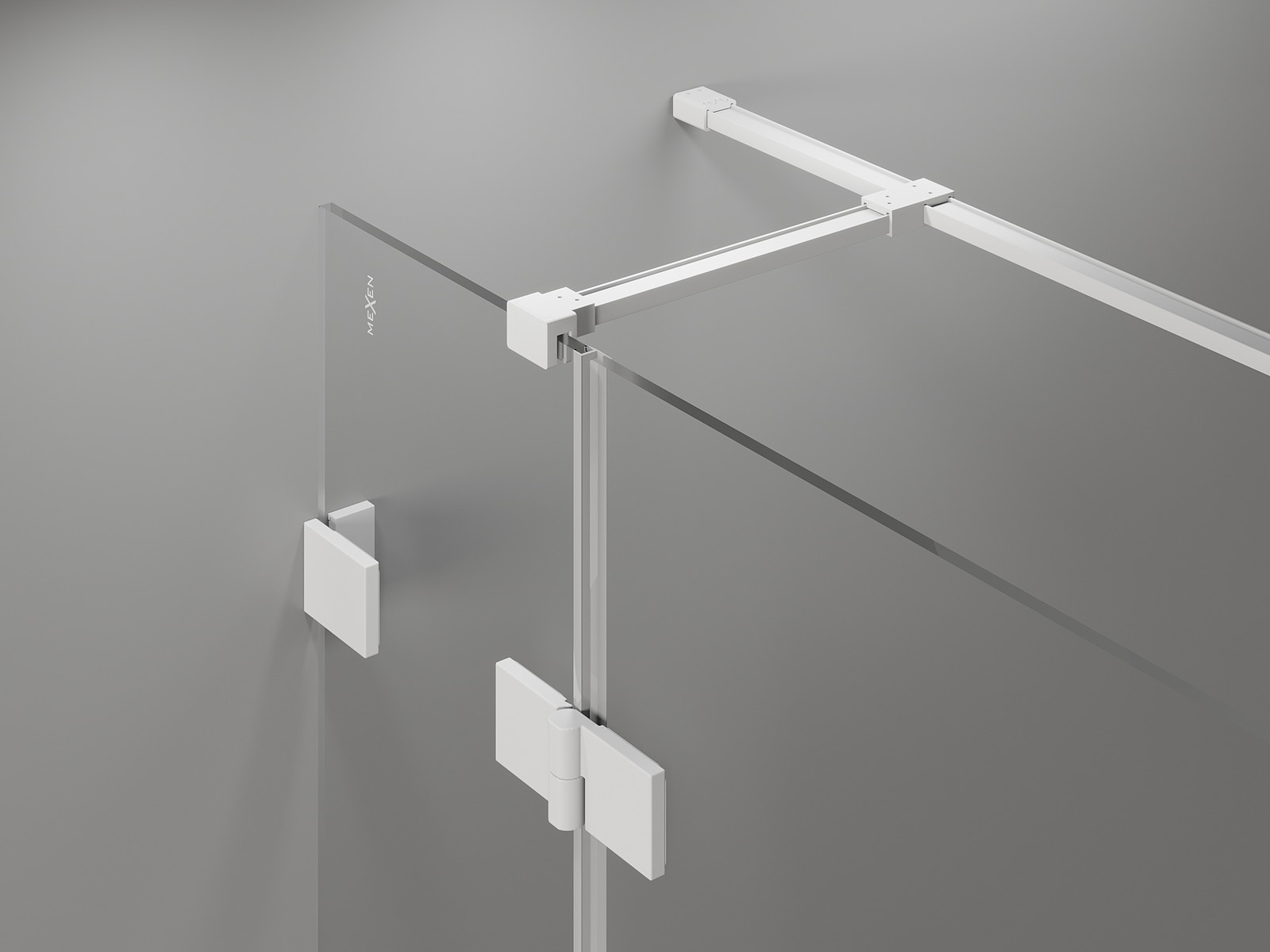 Οι σφιγκτήρες και οι μεντεσέδες είναι κατασκευασμένοι από πολύ ανθεκτικό ορείχαλκο και επιπλέον δημιουργούν μια ευθυγραμμισμένη επιφάνεια γυαλιού. Είναι μια εξαιρετική επιλογή που συνδυάζει κομψότητα, ανθεκτικότητα και σύγχρονο σχεδιασμό. Χάρη σε αυτές τις λύσεις, η ντουζιέρα κερδίζει σε αισθητική και ταυτόχρονα διευκολύνουν τη διατήρηση της καθαριότητας.