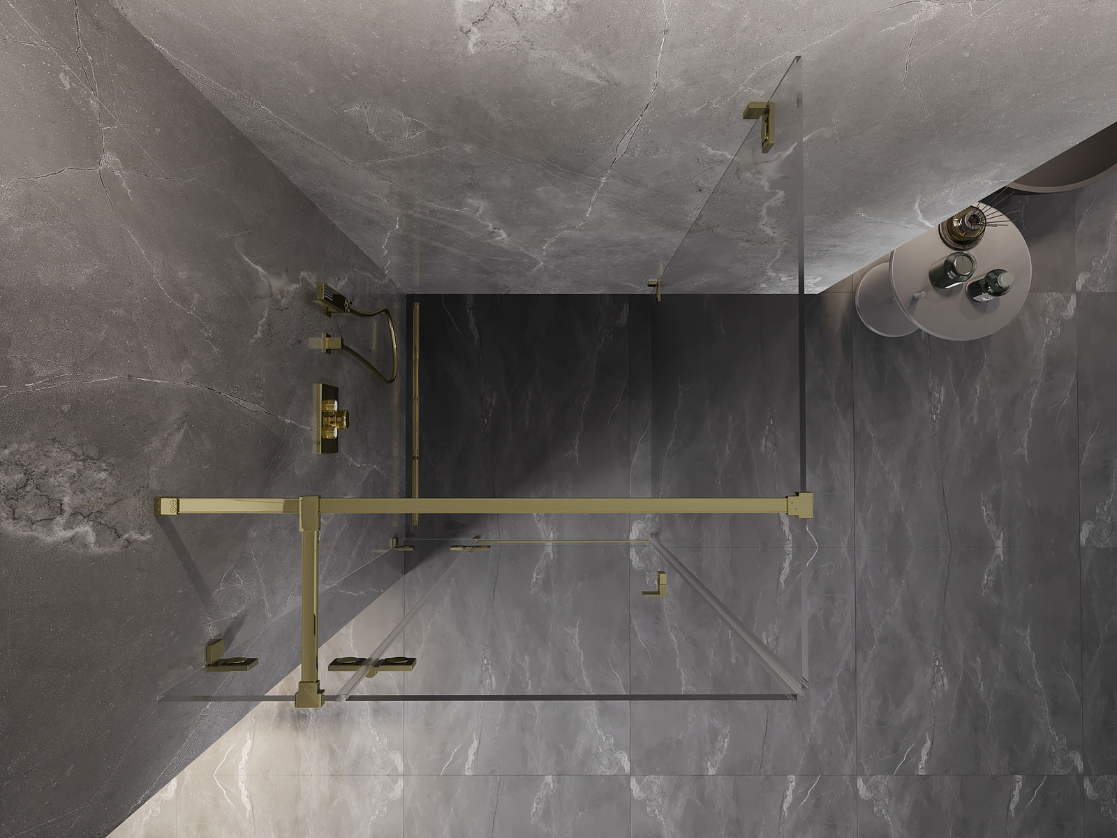 Οι σφιγκτήρες και οι μεντεσέδες είναι κατασκευασμένοι από πολύ ανθεκτικό ορείχαλκο και επιπλέον δημιουργούν μια ευθυγραμμισμένη επιφάνεια γυαλιού. Είναι μια εξαιρετική επιλογή που συνδυάζει κομψότητα, ανθεκτικότητα και σύγχρονο σχεδιασμό. Χάρη σε αυτές τις λύσεις, η ντουζιέρα κερδίζει σε αισθητική και ταυτόχρονα διευκολύνουν τη διατήρηση της καθαριότητας.