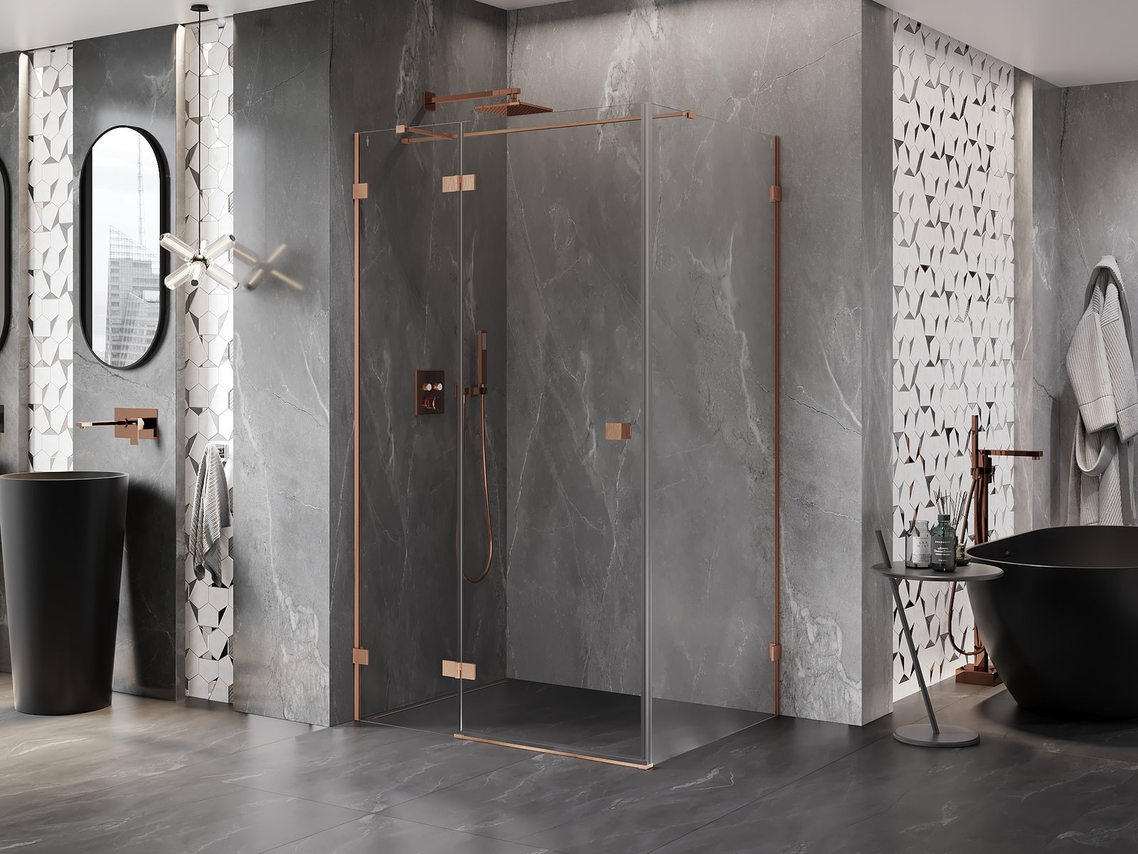 Οι σφιγκτήρες και οι μεντεσέδες είναι κατασκευασμένοι από πολύ ανθεκτικό ορείχαλκο και επιπλέον δημιουργούν μια ευθυγραμμισμένη επιφάνεια γυαλιού. Είναι μια εξαιρετική επιλογή που συνδυάζει κομψότητα, ανθεκτικότητα και σύγχρονο σχεδιασμό. Χάρη σε αυτές τις λύσεις, η ντουζιέρα κερδίζει σε αισθητική και ταυτόχρονα διευκολύνουν τη διατήρηση της καθαριότητας.