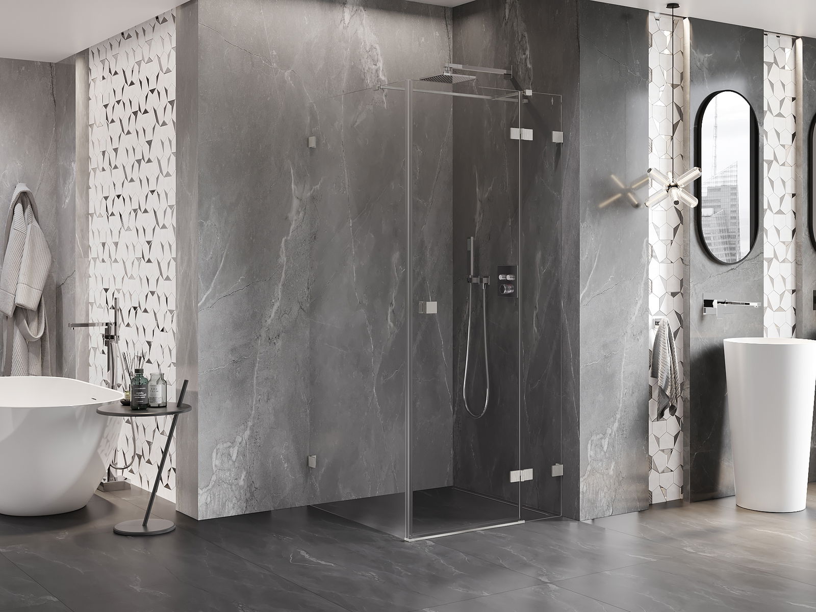 Οι σφιγκτήρες και οι μεντεσέδες είναι κατασκευασμένοι από πολύ ανθεκτικό ορείχαλκο και επιπλέον δημιουργούν μια ευθυγραμμισμένη επιφάνεια γυαλιού. Είναι μια εξαιρετική επιλογή που συνδυάζει κομψότητα, ανθεκτικότητα και σύγχρονο σχεδιασμό. Χάρη σε αυτές τις λύσεις, η ντουζιέρα κερδίζει σε αισθητική και ταυτόχρονα διευκολύνουν τη διατήρηση της καθαριότητας.