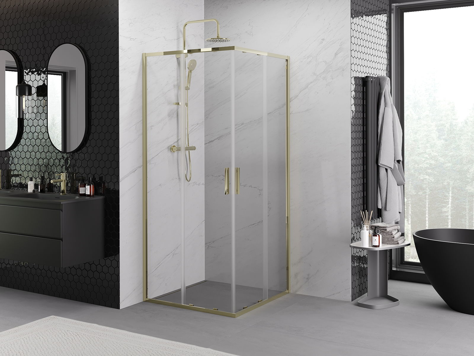 Η πρακτική και άνετη λαβή κατασκευάζεται από ανθεκτικό και αντοχής μέταλλο. Ο μοντέρνος σχεδιασμός σε συνδυασμό με το φινίρισμα που ταιριάζει με το χρώμα των προφίλ προσδίδει στο σύνολο μια σύγχρονη και κομψή εμφάνιση, τονίζοντας την αισθητική κάθε μπάνιου.