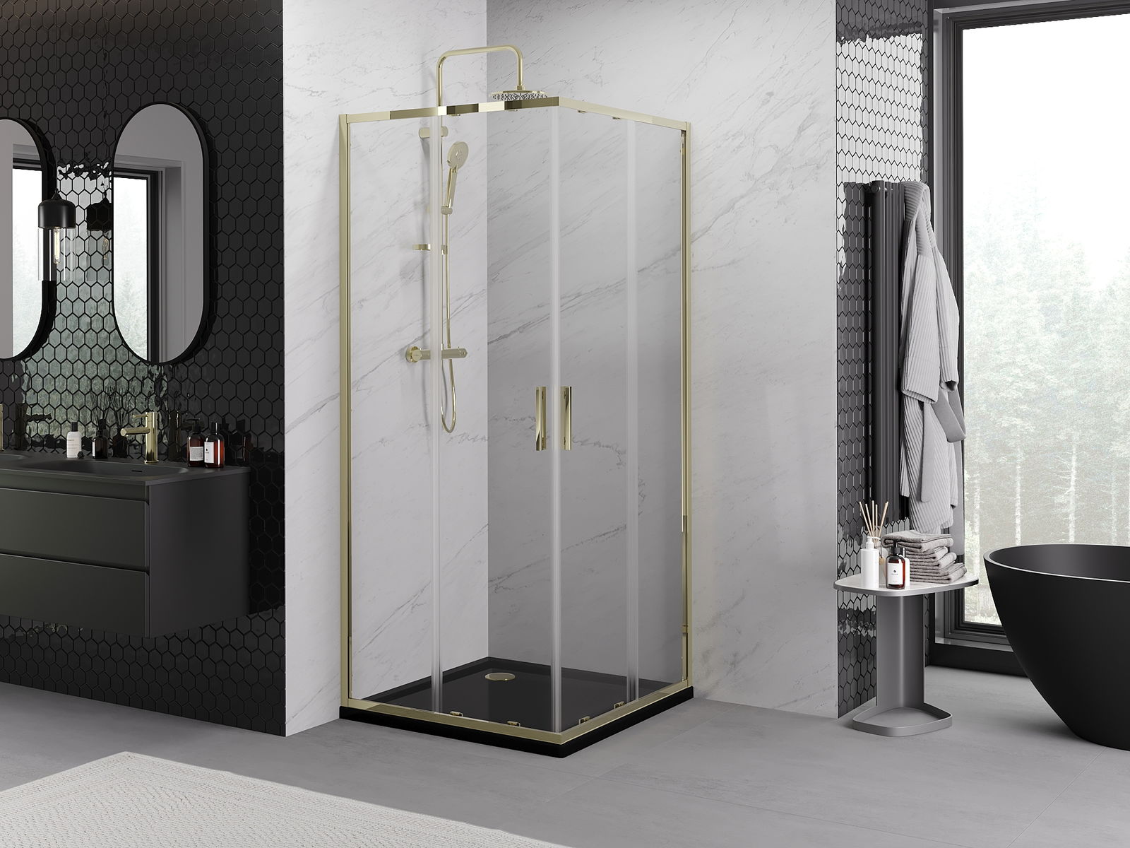 Mexen Rio τετράγωνη καμπίνα ντους 90 x 90 εκ., διάφανη, μαύρη - 860-090-090-70-00