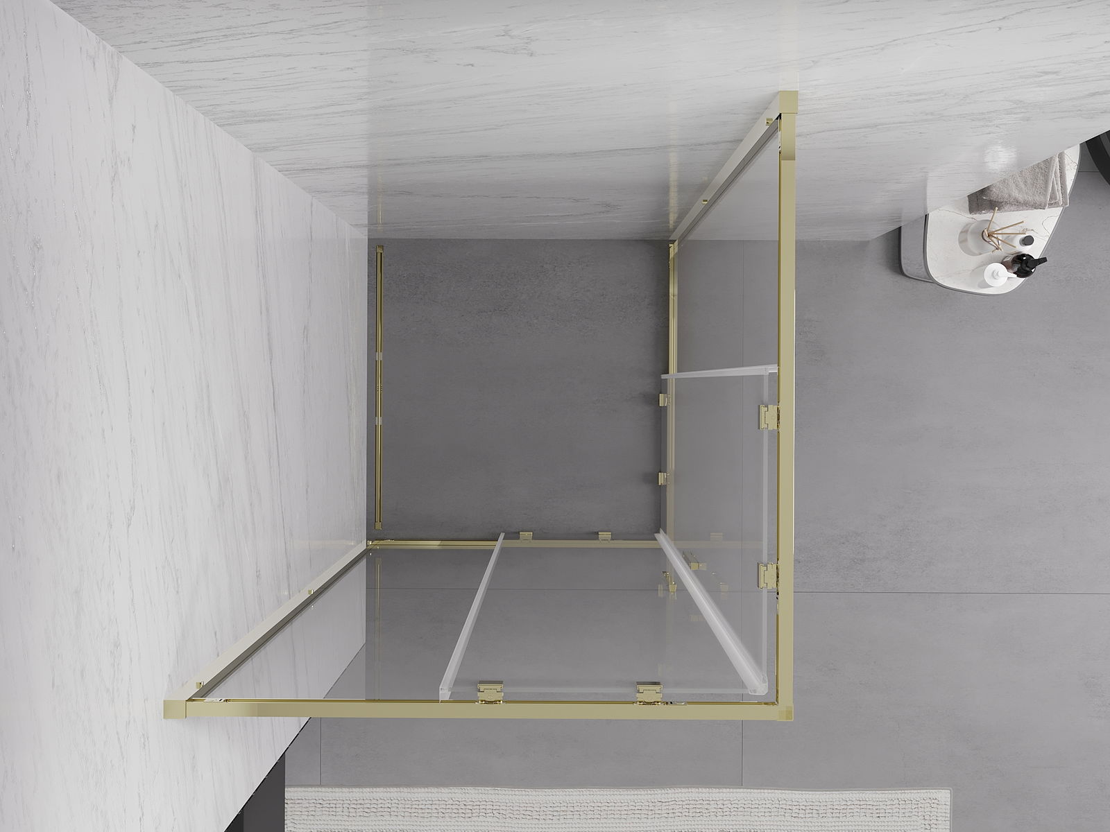 Mexen Exo τετράγωνη συρόμενη καμπίνα ντους 95 x 95 cm, διαφανής, χρυσή