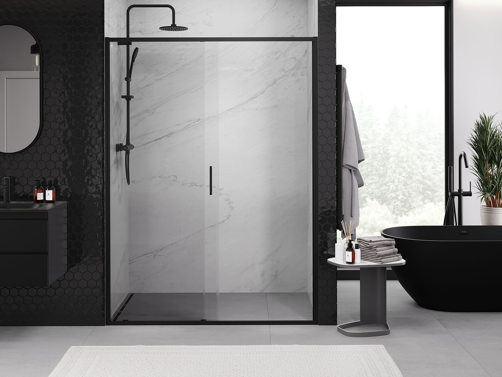 Mexen Exo συρόμενη πόρτα ντους 190 cm, διάφανη, μαύρη - 8151-190-000-70-00