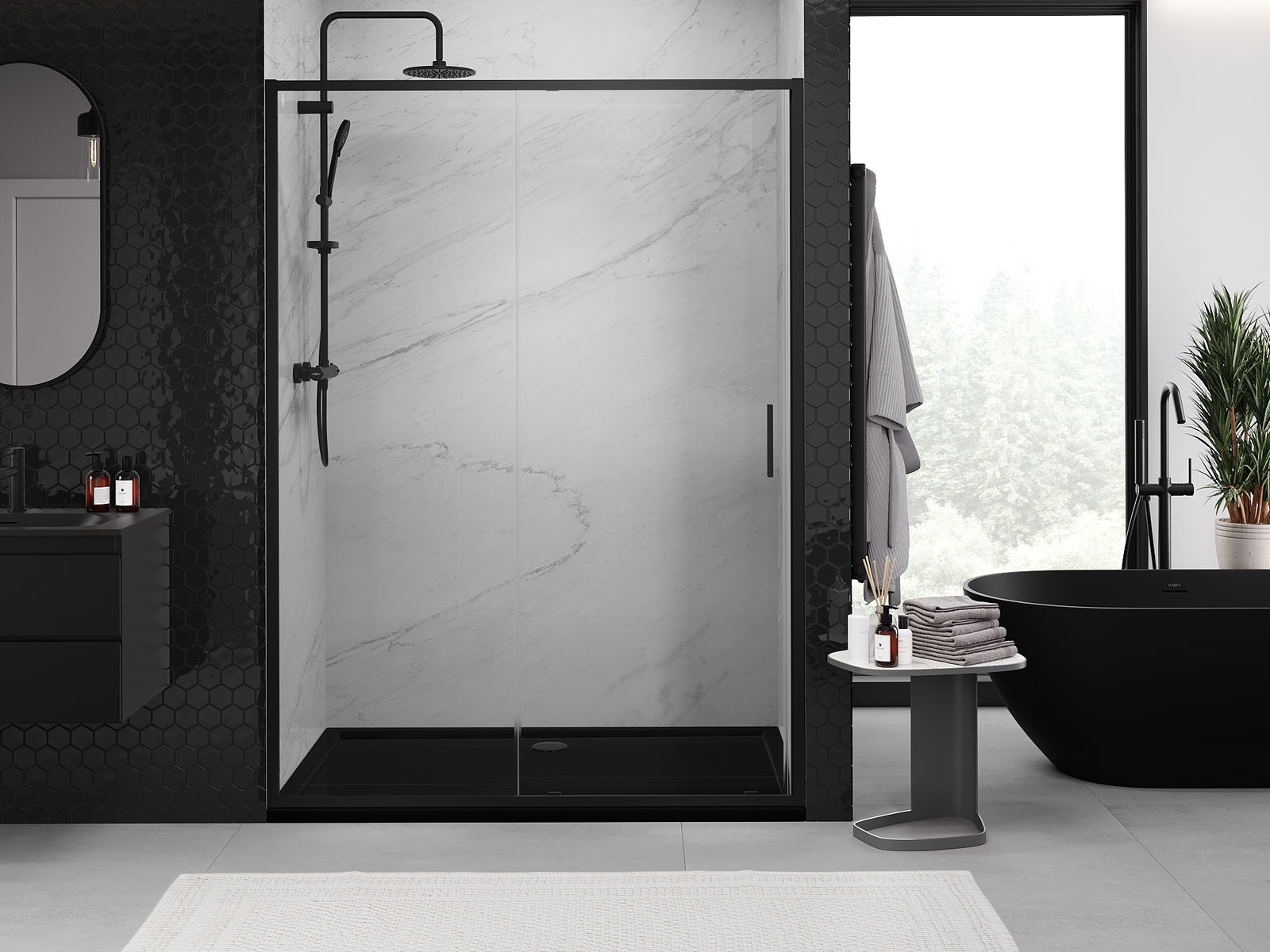 Η πρακτική και άνετη λαβή κατασκευάζεται από ανθεκτικό και αντοχής μέταλλο. Ο μοντέρνος σχεδιασμός σε συνδυασμό με το φινίρισμα που ταιριάζει με το χρώμα των προφίλ προσδίδει στο σύνολο μια σύγχρονη και κομψή εμφάνιση, τονίζοντας την αισθητική κάθε μπάνιου.