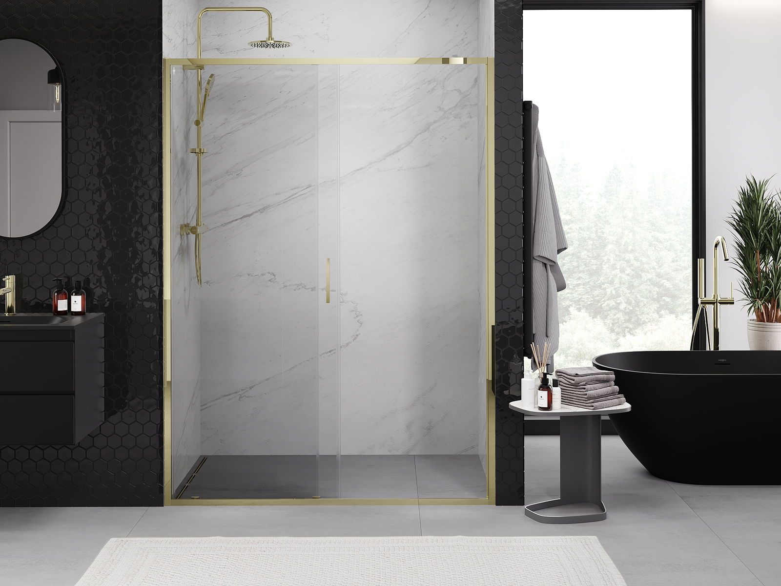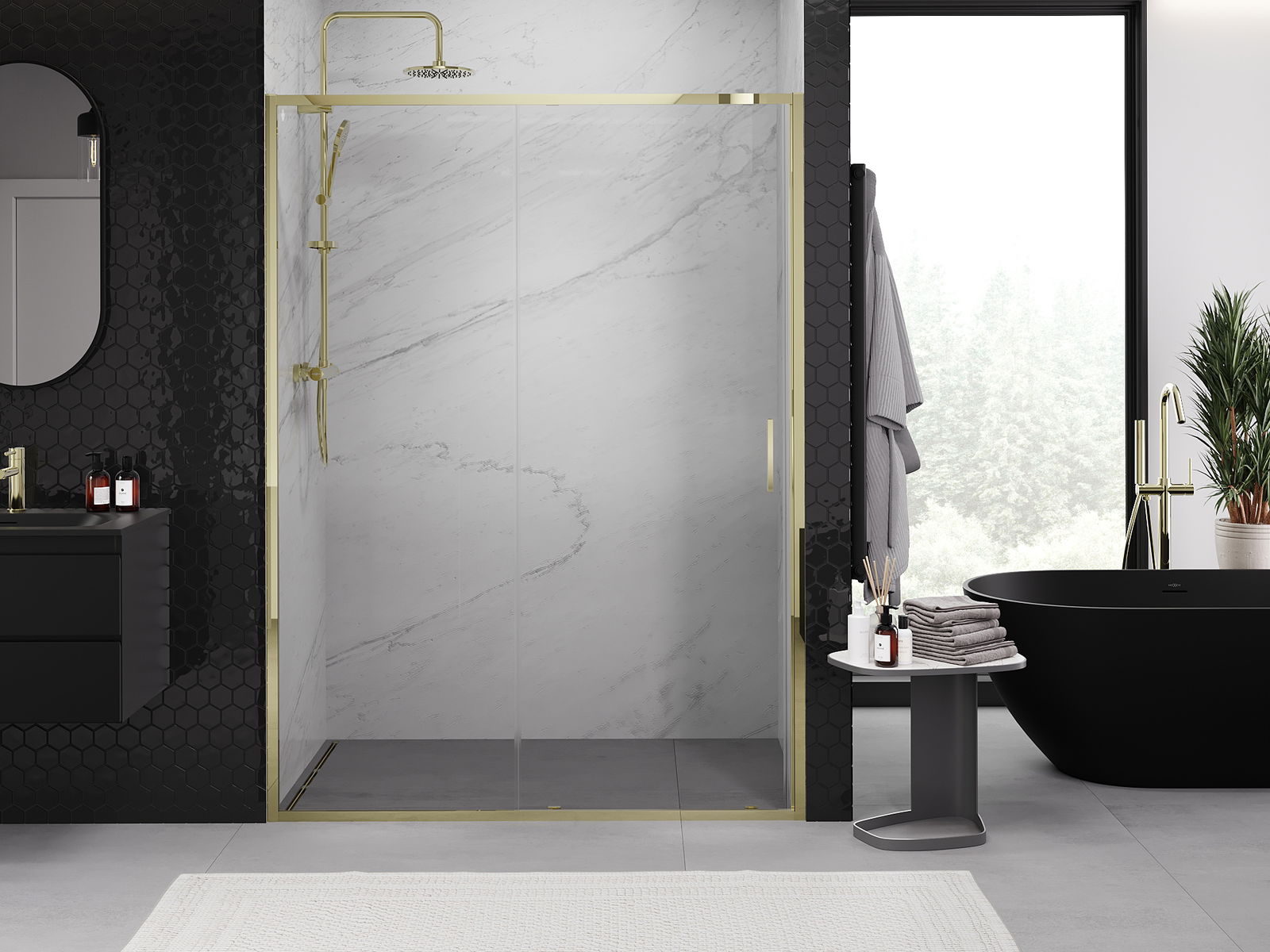 Η πρακτική και άνετη λαβή κατασκευάζεται από ανθεκτικό και αντοχής μέταλλο. Ο μοντέρνος σχεδιασμός σε συνδυασμό με το φινίρισμα που ταιριάζει με το χρώμα των προφίλ προσδίδει στο σύνολο μια σύγχρονη και κομψή εμφάνιση, τονίζοντας την αισθητική κάθε μπάνιου.