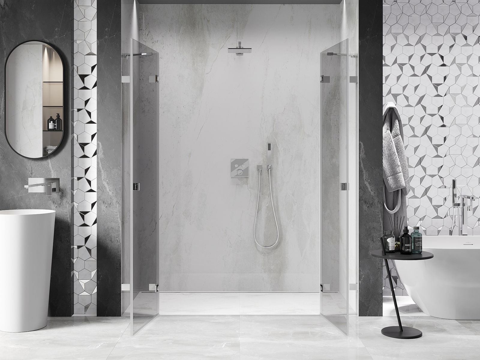 Mexen Lunar Δίδυμες πόρτες ντους πτυσσόμενες 200 cm, διάφανες, χρώμιο