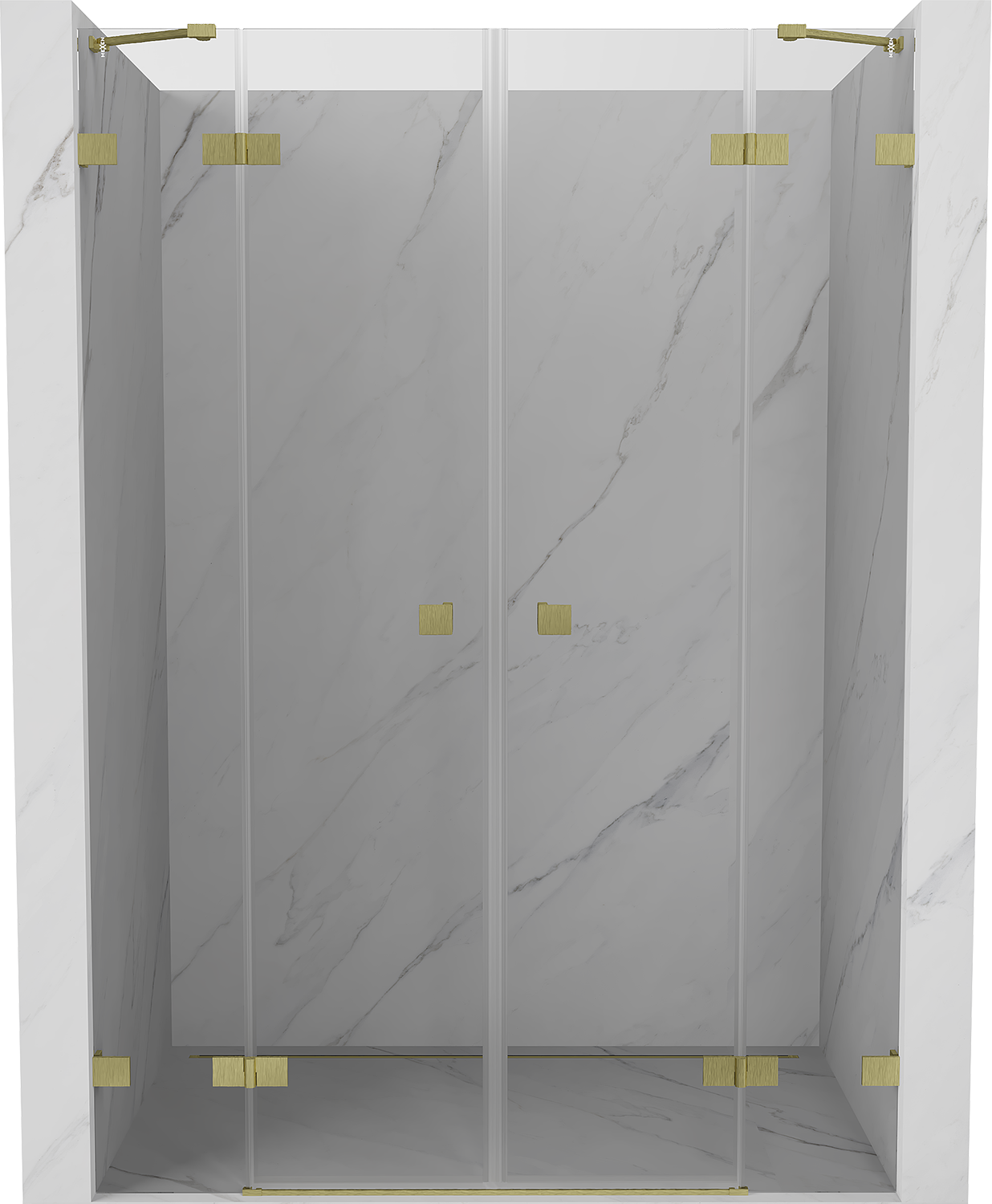 Mexen Lunar Διπλή πόρτα ντους ανοιγόμενη 150 cm, διάφανη, χρυσαφί σατινέ