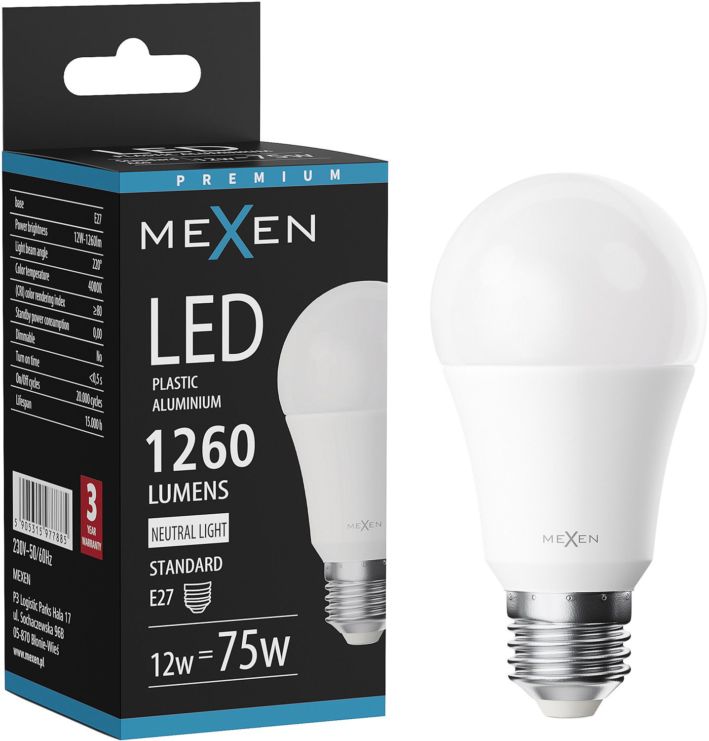 Mexen Nova Λάμπα LED E27, A60, 12W, Ουδέτερη - 4000K, 1260 lm - L100-E27-1240-01