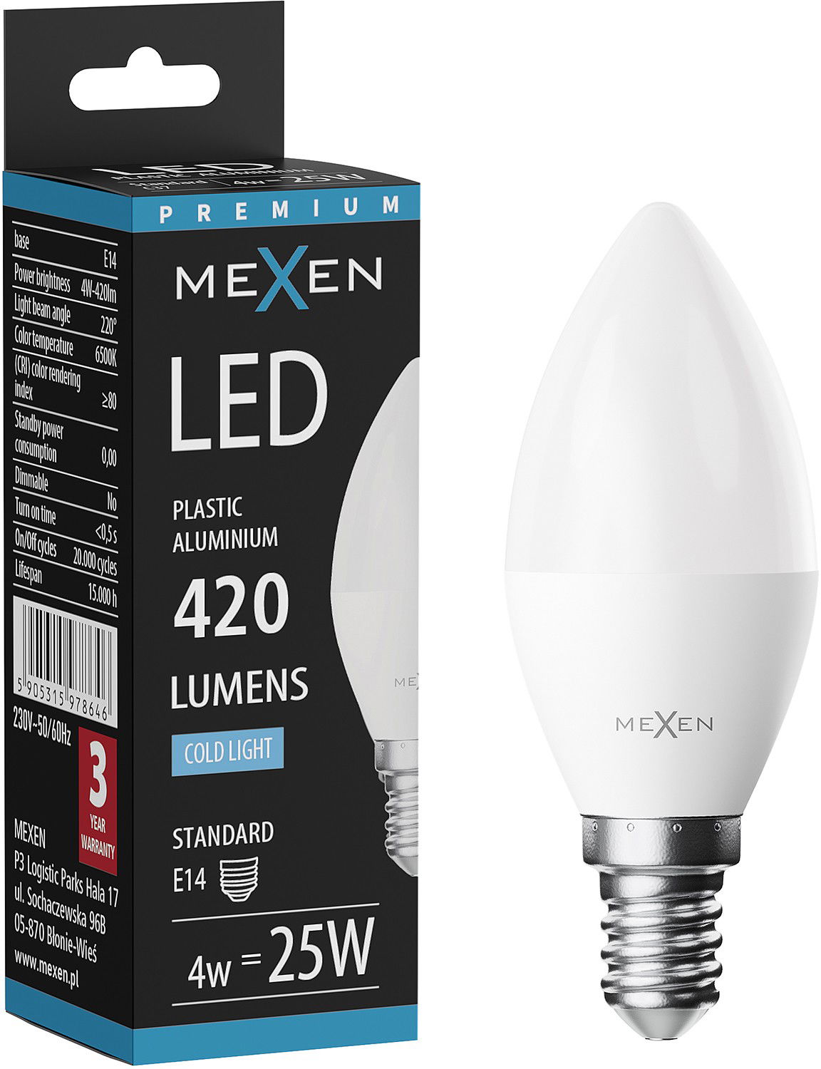 Mexen Nova Λάμπα LED E14, C37, 4W, Ψυχρή - 6500K, 420 lm - L102-E14-0465-01