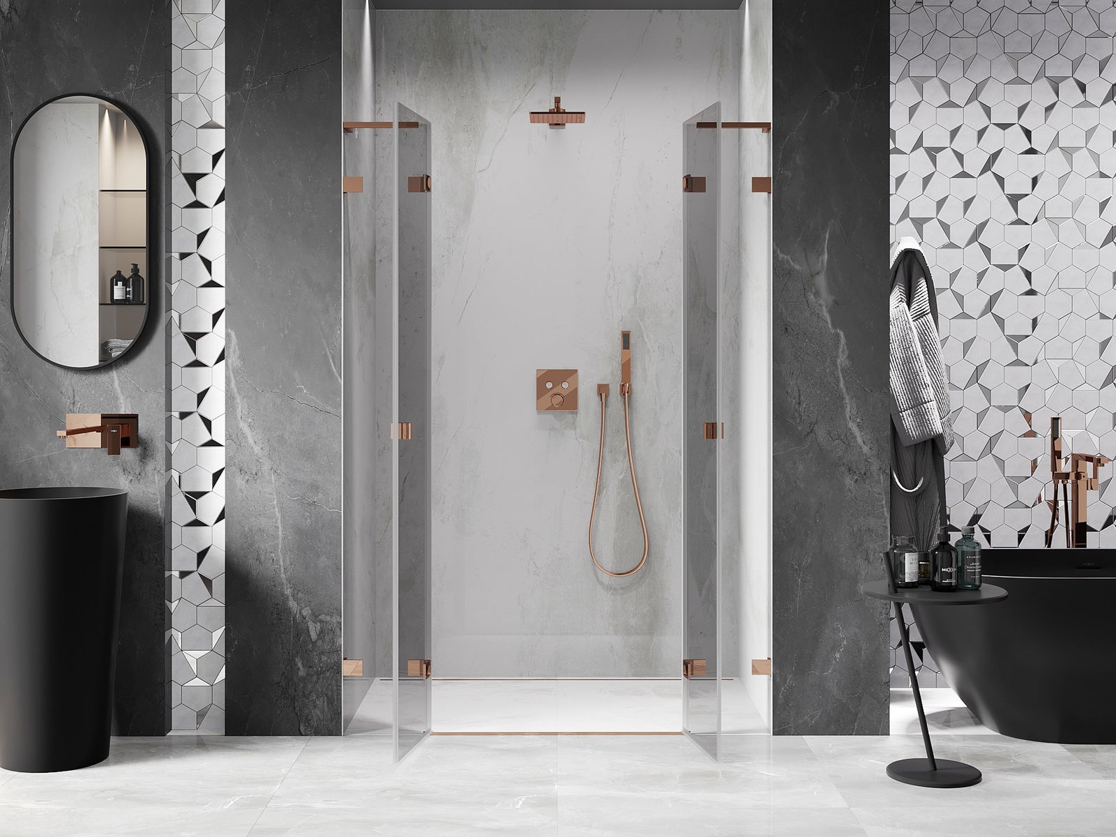 Mexen Lunar L Ντουέτο πτυσσόμενων θυρών ντους 160 εκ. , διαφανές, ροζ χρυσό