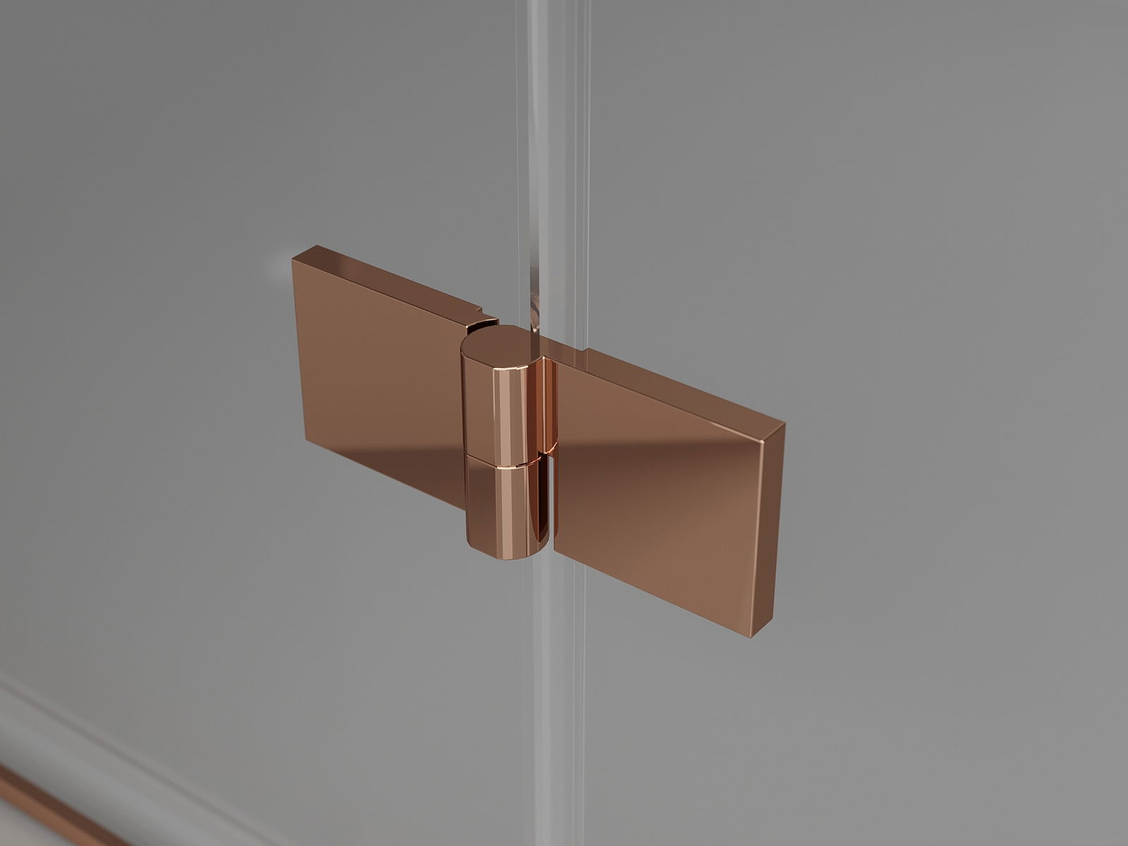 Οι σφιγκτήρες και οι μεντεσέδες είναι κατασκευασμένοι από πολύ ανθεκτικό ορείχαλκο και επιπλέον δημιουργούν μια ευθυγραμμισμένη επιφάνεια γυαλιού. Είναι μια εξαιρετική επιλογή που συνδυάζει κομψότητα, ανθεκτικότητα και σύγχρονο σχεδιασμό. Χάρη σε αυτές τις λύσεις, η ντουζιέρα κερδίζει σε αισθητική και ταυτόχρονα διευκολύνουν τη διατήρηση της καθαριότητας.