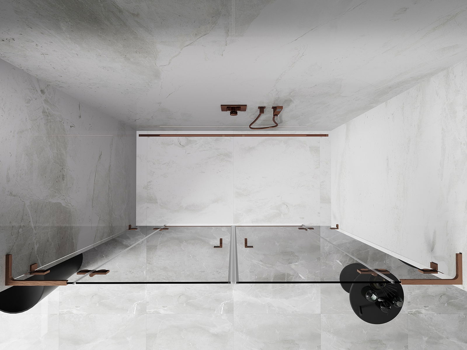 Mexen Lunar L Δίδυμες πόρτες ντους ανοιγόμενες 190 cm, διάφανες, καθαρό χαλκό