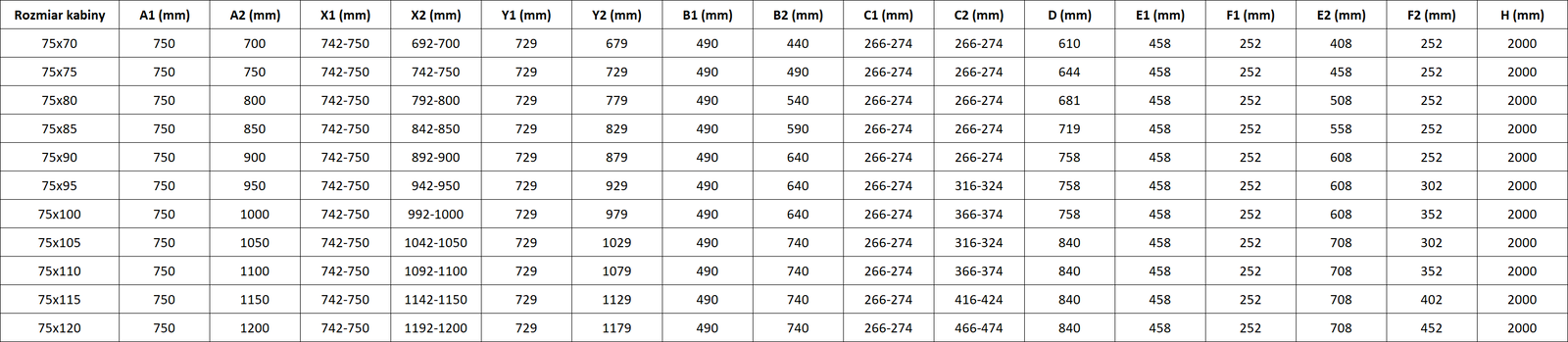 Οι καμπίνες, οι πόρτες και τα διαχωριστικά ντουζιέρας είναι τυποποιημένα για τοποθέτηση σε βάσεις ντουζιέρας συγκεκριμένων διαστάσεων. Αυτές οι διαστάσεις αναφέρονται στο όνομα ή την περιγραφή του προϊόντος. Ωστόσο, θα πρέπει να σημειωθεί ότι οι πραγματικές διαστάσεις των στοιχείων ενδέχεται να διαφέρουν ελαφρώς από τις ονομαστικές τιμές. Σε περίπτωση τοποθέτησης απευθείας στο δάπεδο, συνιστάται ο προσεκτικός έλεγχος των εξωτερικών διαστάσεων και της διάταξης των στοιχείων, σύμφωνα με το τεχνικό σχέδιο.