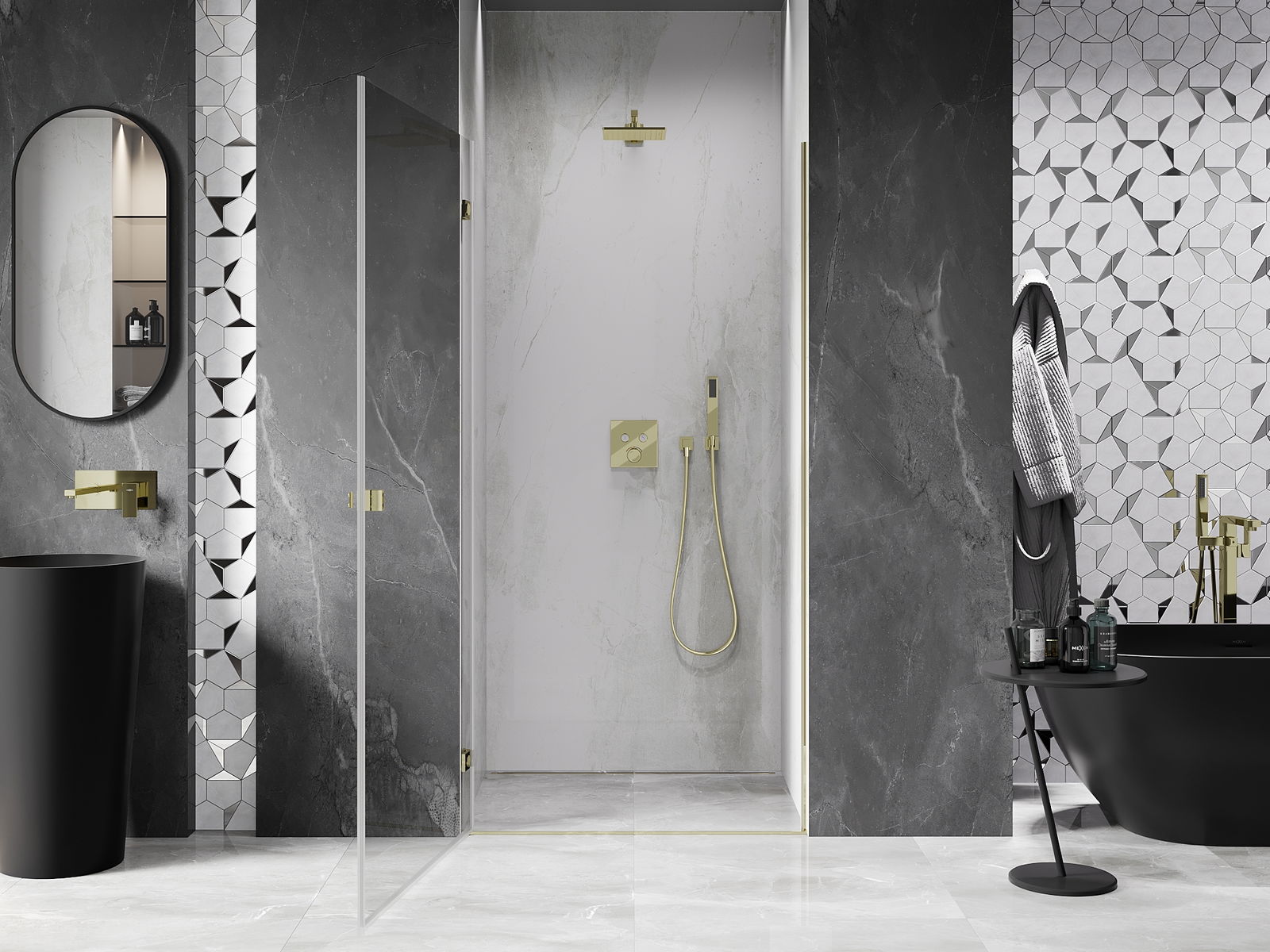 Mexen Lunar-B ανοιγόμενη αριστερή πόρτα ντους 45 cm, διάφανη, χρυσή
