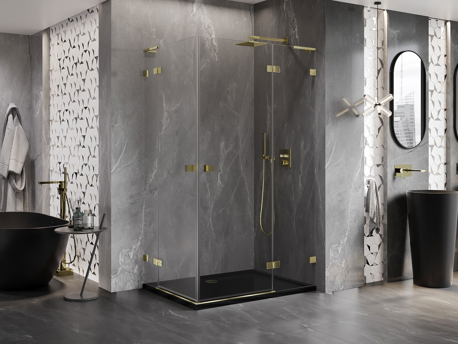 Οι σφιγκτήρες και οι μεντεσέδες είναι κατασκευασμένοι από πολύ ανθεκτικό ορείχαλκο και επιπλέον δημιουργούν μια ευθυγραμμισμένη επιφάνεια γυαλιού. Είναι μια εξαιρετική επιλογή που συνδυάζει κομψότητα, ανθεκτικότητα και σύγχρονο σχεδιασμό. Χάρη σε αυτές τις λύσεις, η ντουζιέρα κερδίζει σε αισθητική και ταυτόχρονα διευκολύνουν τη διατήρηση της καθαριότητας.