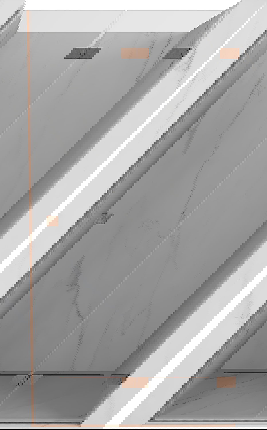 Οι σφιγκτήρες και οι μεντεσέδες είναι κατασκευασμένοι από πολύ ανθεκτικό ορείχαλκο και επιπλέον δημιουργούν μια ευθυγραμμισμένη επιφάνεια γυαλιού. Είναι μια εξαιρετική επιλογή που συνδυάζει κομψότητα, ανθεκτικότητα και σύγχρονο σχεδιασμό. Χάρη σε αυτές τις λύσεις, η ντουζιέρα κερδίζει σε αισθητική και ταυτόχρονα διευκολύνουν τη διατήρηση της καθαριότητας.