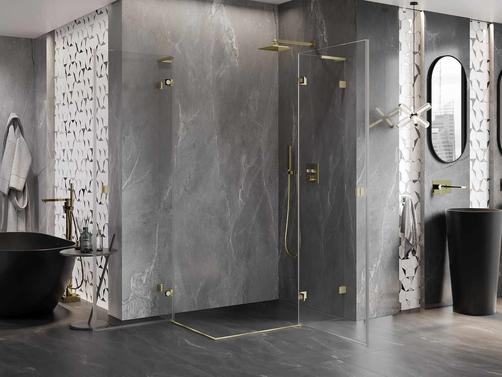 Mexen Lunar L Δίθυρη καμπίνα ντους ανοιγόμενη δεξιά 120 x 95 cm, διάφανη, χρυσό